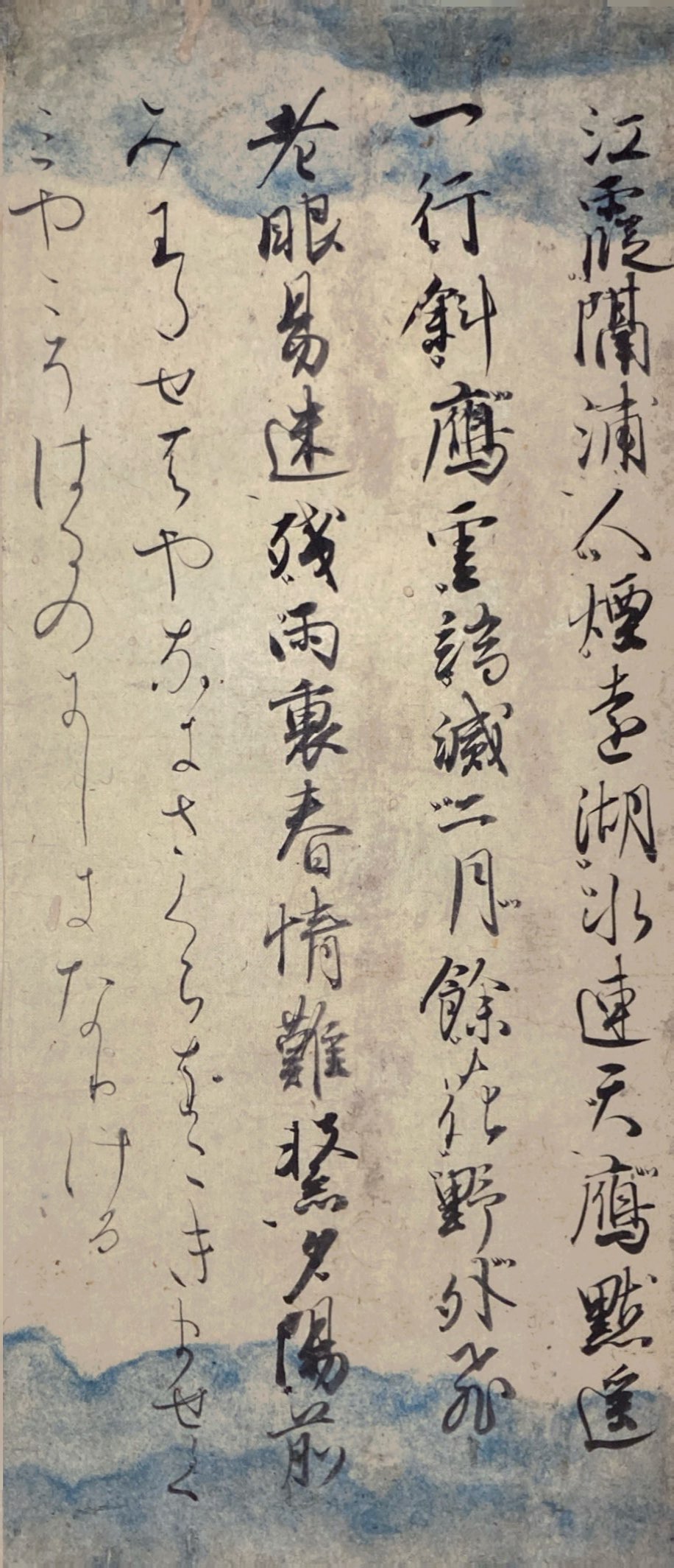 이것도 근현대 작가의 작품입니다. 아름답긴 하고 대중들의 반응도 있을 것 같기는 한데, 너무 '현대인'이 생각하는 관념적 和紙, 관념적 일본풍 같은 느낌..? 네 그냥 제 기분.. 저 ちらし書き 별로 안 좋아하나봐요;; 고필 작품 중에서도 色紙 작품 썩 안 좋아하기는 했던 것 같음 하하. 글씨체도 좀 과하게 장식성을 추구한 느낌이라 저는 취향이 아니었지만.. 그래도 현대 작가들이 어떤 고민들을 했는지는 좀 보인다고 할까요.