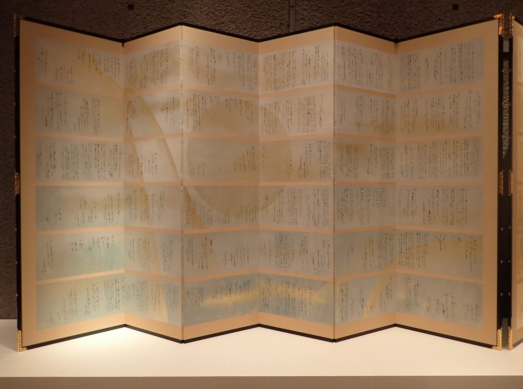 무척이나 커다란 병풍 작품입니다. 현대 작가의 かな 작품은 이렇구나, 하고 느꼈답니다. 본 전시회의 주제와도 일맥상통하듯이, 무척이나 아름다운 종이를 활용하여 병풍 작품으로 완성하고 계시죠.