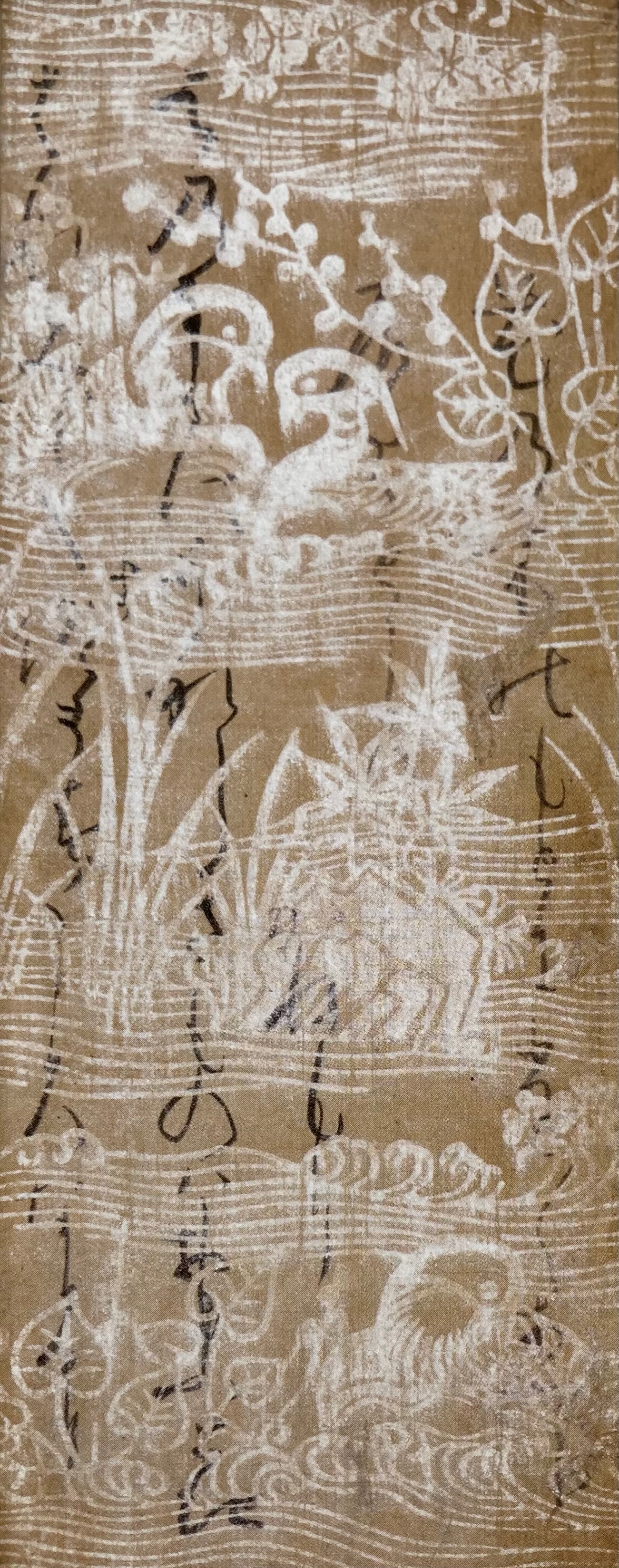 또 드디어 정식 디지털 데이터가 있다(!!) 나비와 새가 금은 도료로 그려져 있고, 그 외에도 흐르는 물이나 풀과 꽃, 버드나무 등이 그려져 물가의 풍경을 주요 테마로 삼고 있습니다. 그러나 이러한 그림들은 여기에 적힌 시와는 직접적으로 관련이 없고, 어디까지나 아름다운 글씨를 쓰기 위한 재료로 준비된 것이었습니다.