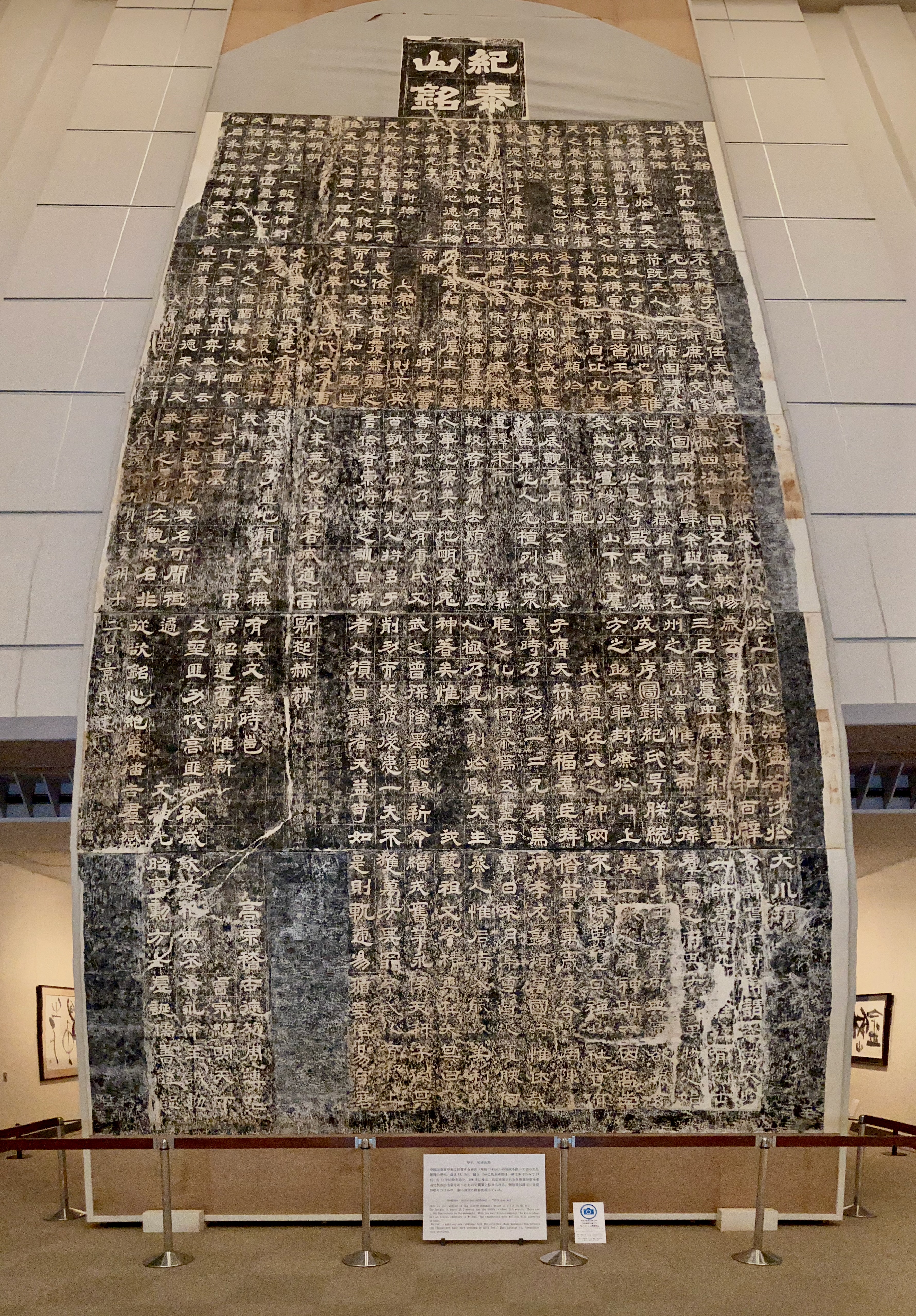 중앙홀에는 '紀泰山銘' 당 현종이 중국의 태산을 찾았을 때에 조각된 비석의 탁본이 전시되어 있습니다. 높이 13미터, 가로 폭 5.3미터의 돌이 약 1000글자가 새겨져 있다고 하는데, 원본 크기 그대로 구현해 놓아서 정말이지 그 장엄함이 고스란히 느껴졌답니다. 이것만 유일하게 촬영이 가능했어요. 하하.