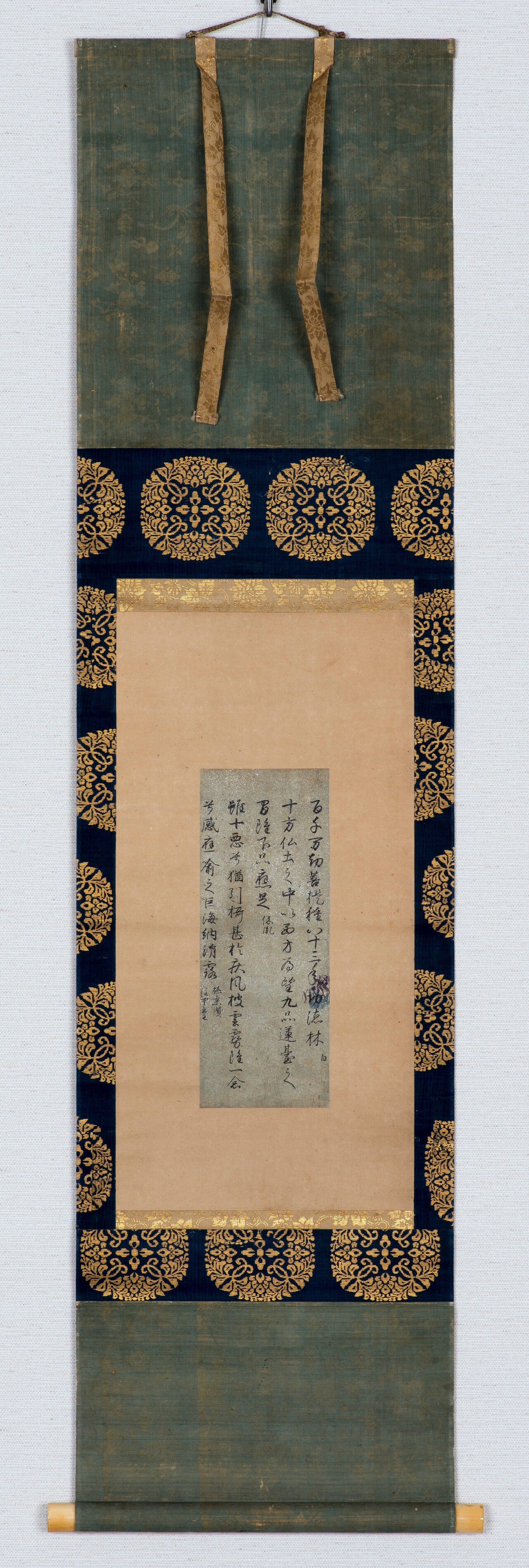 연한 푸른빛 藍紙에 금 揉箔를 뿌리고, 또 금 도료로 선을 그은 사경입니다. 11세기 중반에서 12세기에 걸쳐 제작된 것이 아닌가, 하고 추측됩니다. 불탄 흔적이 있어 焼経라는 이름이 붙었는데, 좀 너무 한거 아니야? 하는 생각도 들었지만 하하. 그치만 저 여리여리한 푸른 빛에 금박 조합이 너무너무 아름다웠어요. 연한 푸른빛은 확실히, 좀 자주 보지는 못한 것 같아요. 아마 이 사경의 제작 시기도 藍紙로 유명한 藍紙本万葉集를 藤原伊房(1030~1090)의 작품으로 추측하고 있기 때문에, 동시대의 작품이 아닌가 하는 식으로 추측하고 있거든요.