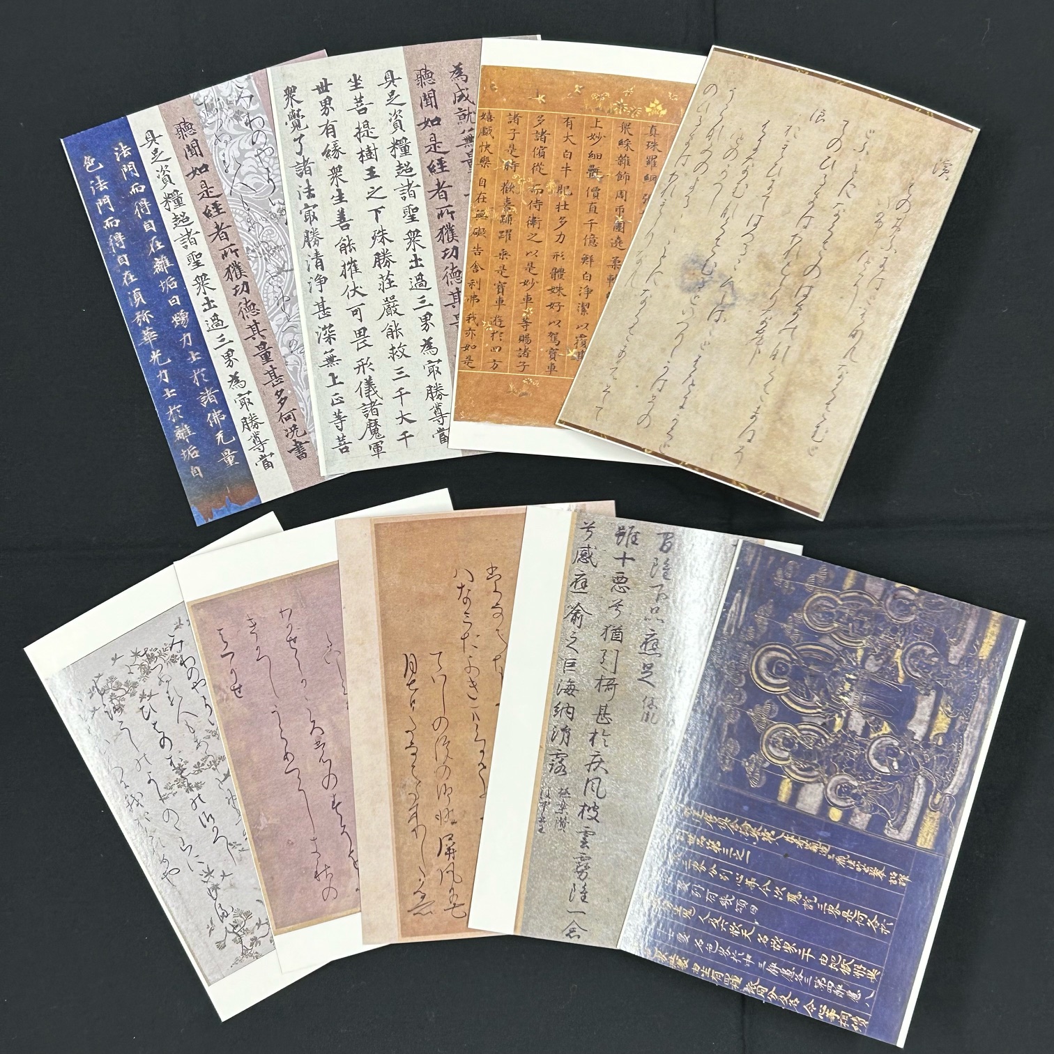 맞아, 그리고 15시 45분 즈음에 관람을 끝내고 나오면서 여유롭게 뮤지엄샵을 털었습니다 헤헤. 당연히 도록은 샀고요. 서도 미술관인 만큼 서예 도구도 이것저것 팔고 계시던데 굳이 여기서 살 정도는 아닌 것 같았고. 포스트 카드만 몇 장 사왔어요. 이렇게 열가지를 팔고 계시던데 저는 그 중 다섯 장을 골라 샀습니다. 아, 1~5번, 6~10번을 각각 세트로 묶어 약간 저렴한 가격에 팔던데.. 아니 생각을 해보세요 그 세트를 누가 사겠냐고요.... (아마 그래서 그렇게 조합했겠죠? 허허) 저는 당연히, 4번의 名家家集切 伝紀貫之와 5번 石山切伊勢集 伝藤原行成와 6번 関戸本古今集 伝藤原行成와 7번 香紙切 伝小大君와 8번 法輪寺切 伝藤原行成의 다섯 종류를 샀죠! 하하. 당연함. 그냥 かな 작품 다 삼; 그리고 뭘 벽에 붙일거냐면.. 당연히 関戸本이요 흑흑. 보랏빛 종이도 너무 아름다워...