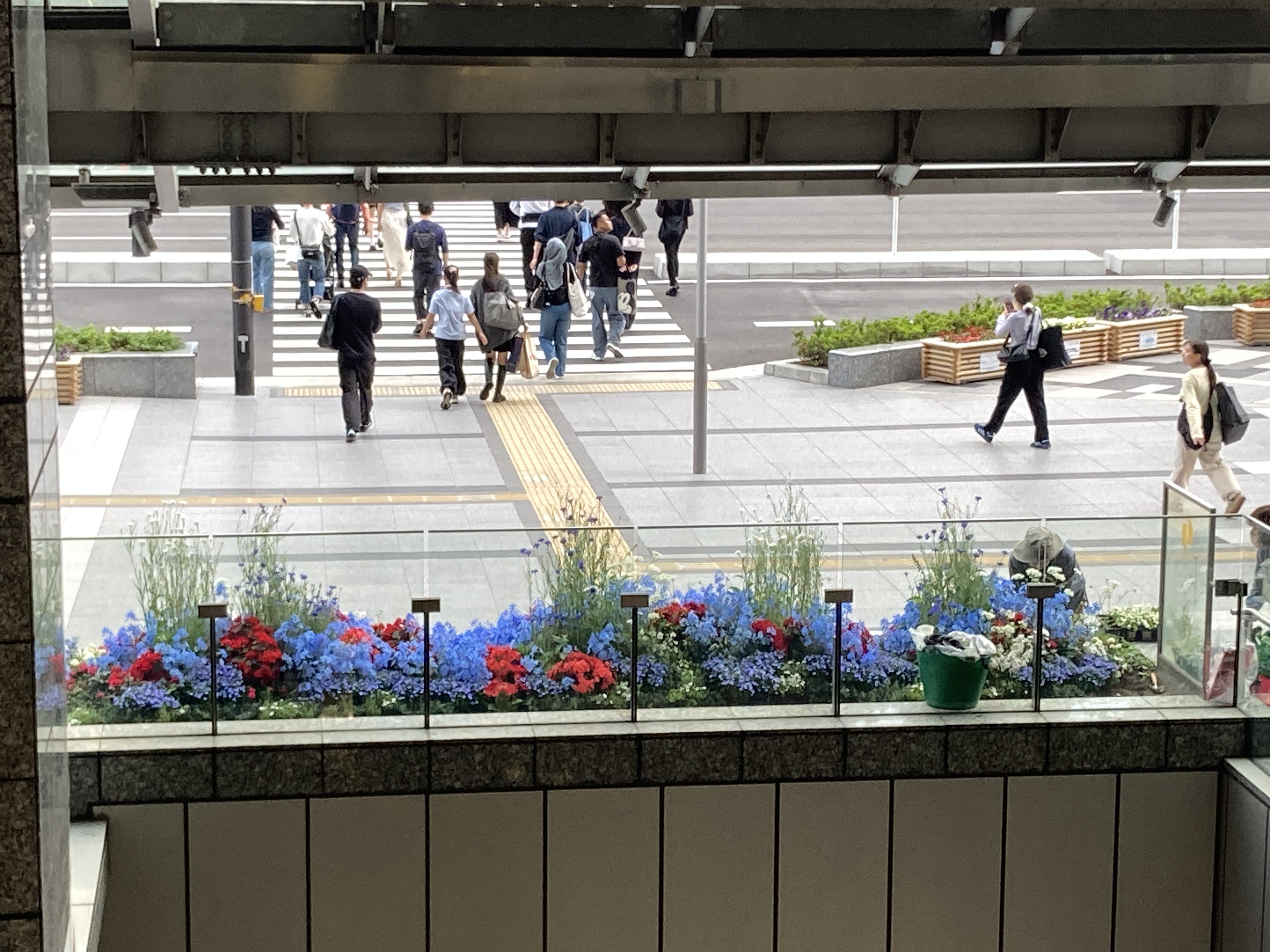 오사카역 앞에서, 화단 꽃도 만박 컨셉으로 꾸며놓다니 정말 대단하다... 그런 기분.. (만박에 관심 1도 없는 사람)