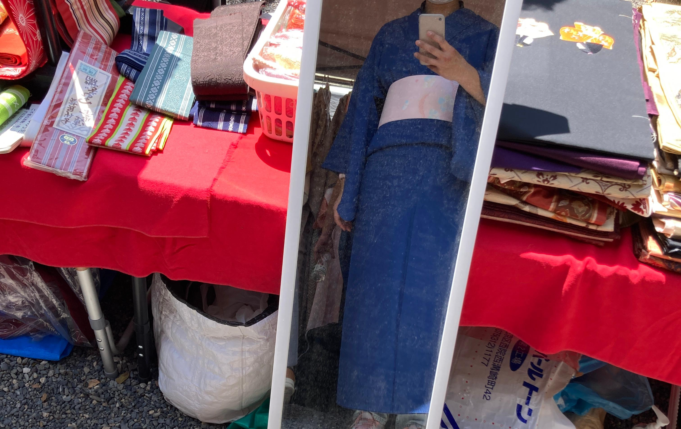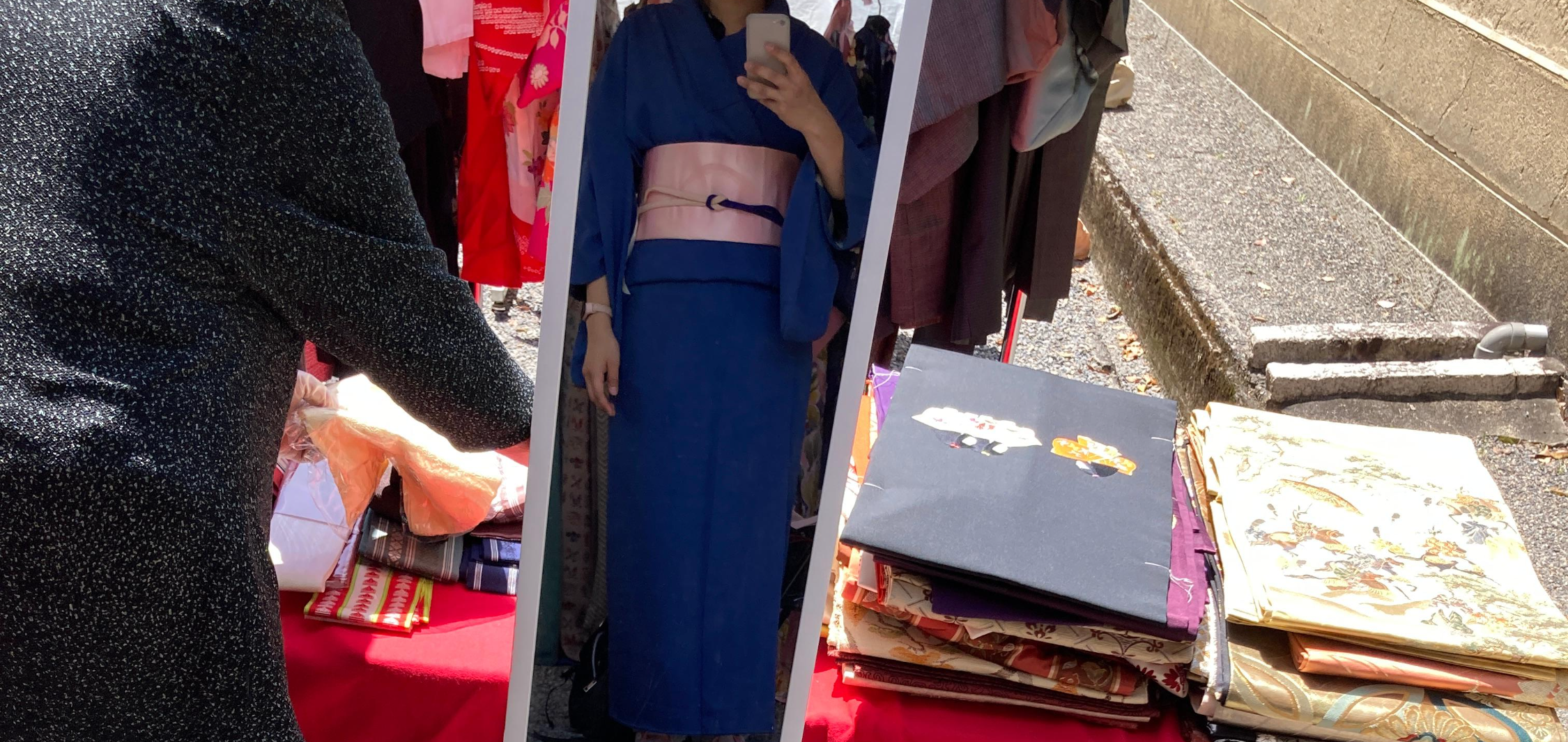 한 기모노 가게에서, 사이즈 딱 맞는게 있다고 갑자기 입힘 당했어요... 끈이랑 띠도 아주 깔맞춤 해서 아름답게 입혀주시더라고요... 그치만 파란색은 취향이 아니었단 말이예요 흑흑... 그래서 아쉽지만 저건 안 사고 다른 띠(취향임)를 대신 사서 나왔어요...