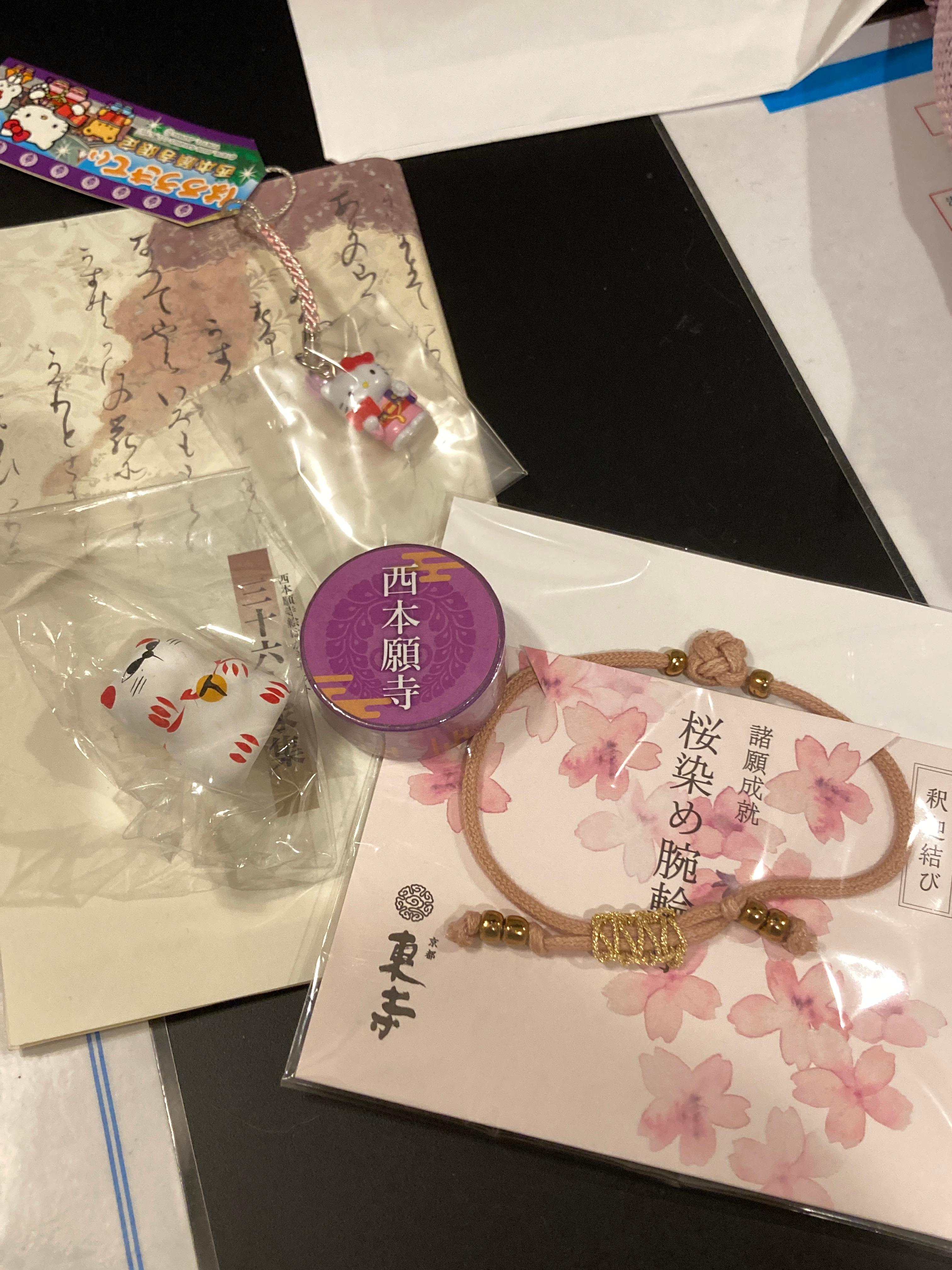 그리고 호텔로 컴백~~ 오늘의 전리품! 東寺에서는 오미쿠지와 세트인 마네키네코와, 경내 벚나무로 물들였다는 팔찌를 샀습니다. 이 팔찌는 당장 다음날부터 저의 모든 일정을 함께해주셨죠.