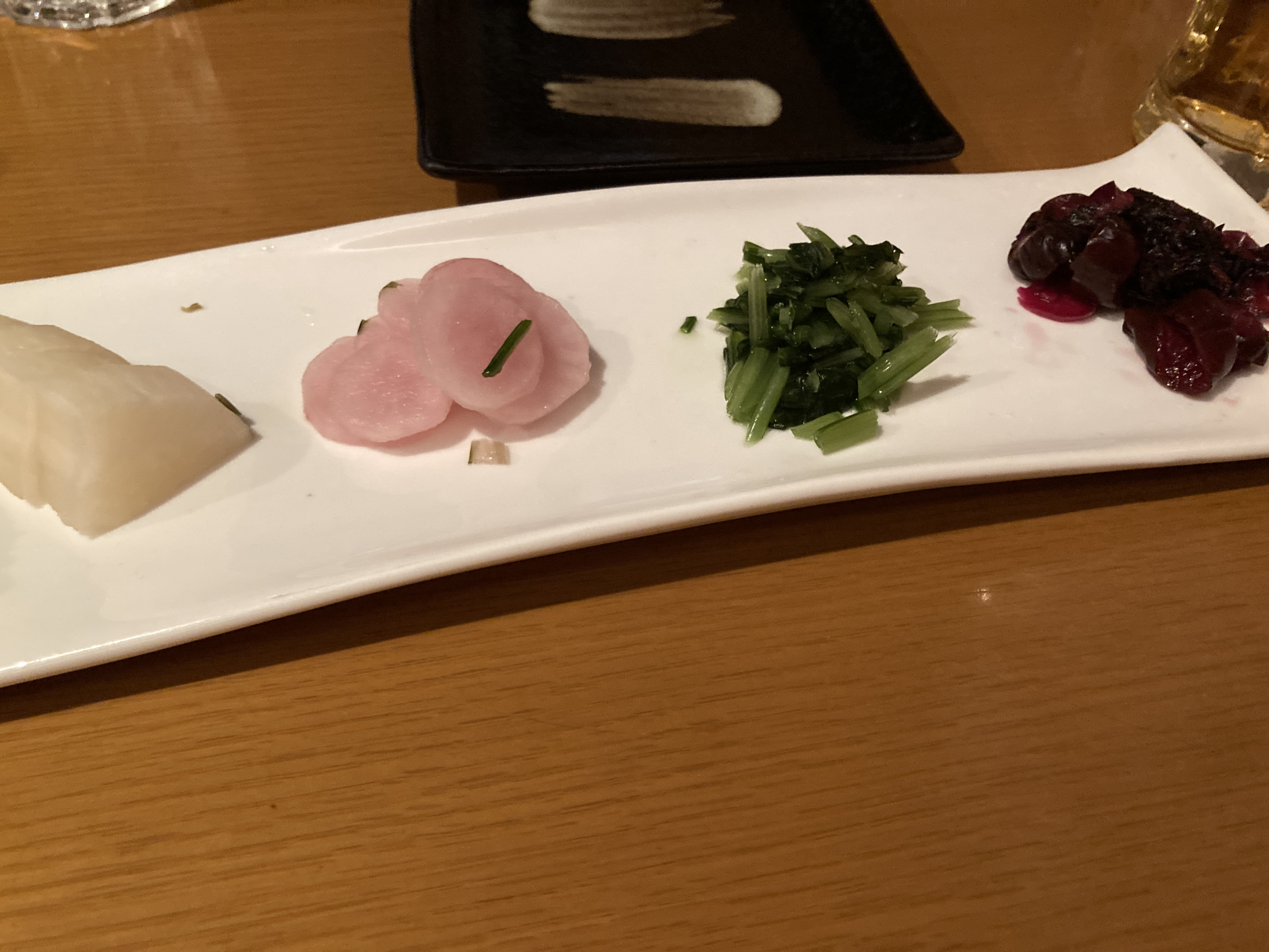 아니 사실 올해 2월 초에 홋카이도에 1박으로 다녀왔는데 일행들이 어디 가고 싶냐, 뭘 하고 싶냐 물어도 그냥 징기스칸을 먹고 초밥을 먹고 빵과 우유와 아이스크림을 먹고 맥주를 마실 수 있으면 그 외의 일정은 뭐든 좋아요😃 같은 소리를 했고 진짜진짜로 그랬었는데... 교토? 딱히 뭘 먹고 싶다는 마음은 안 드는 것 같네요... 괜찮은 커피나 주세요... 그런 기분이라서 먹을 것에 크게 신경 안 쓰고 그냥 근처에서 적당한데 들어가곤 했더니, 몸은 꽤나 편했어요ㅎㅎ 기대가 없으니 실망할 일도 없고? 아무튼 여기도, 절임야채는 좋았고 그 외 다른 것들은 무난하게 괜찮은 가게였습니다ㅎㅎ 사실 마감 직전이라 20분 후에 라스트 오더고 50분 후에 마감인데 괜찮으시겠어요? 하셨는데 라스트 오더 물으러 온 순간 저는 이미 완벽하게 끝낸 후였습니다 우하하.