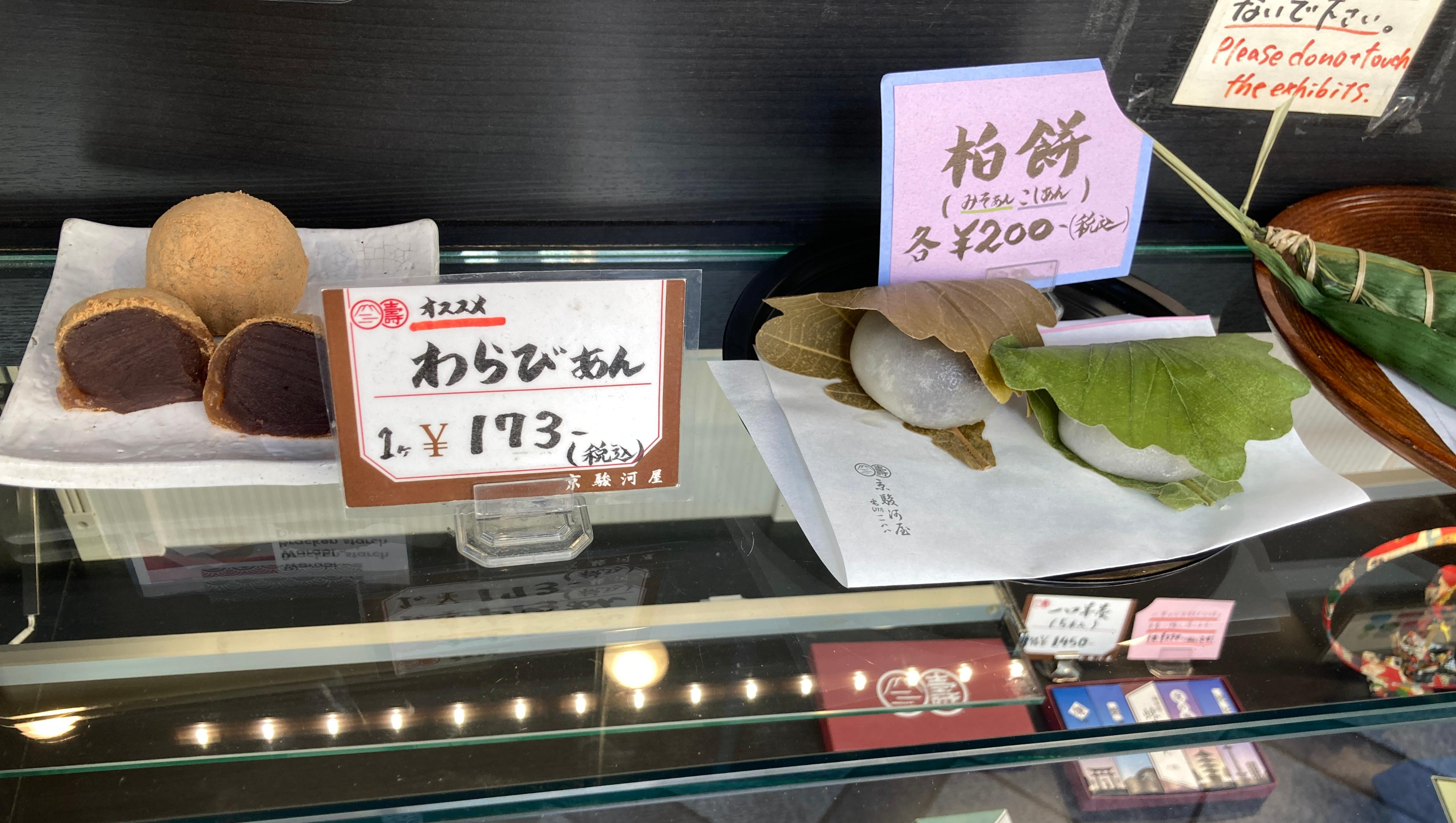 교토역 앞의 전통과자점, 駿河屋 스루가야. 지나가던 길에 아저씨가 뭘 사고 계시길래 저도 냉큼 옆에 서서 わらびあん 하나를 주문했는데, 기다리고 있으려니 아저씨가 柏餅를 가리키면서 이걸 사야한다고 하시길래 잉.. 미소랑 팥이랑 뭐가 더 추천이예요? 하니까 흠~~ 글쎄~ 하시더라ㅎㅎ 아무튼 그래서, 미소는 이미 다른 가게에서 샀으니 こしあん을 덕분에 하나 더 사봤습니다 허허.