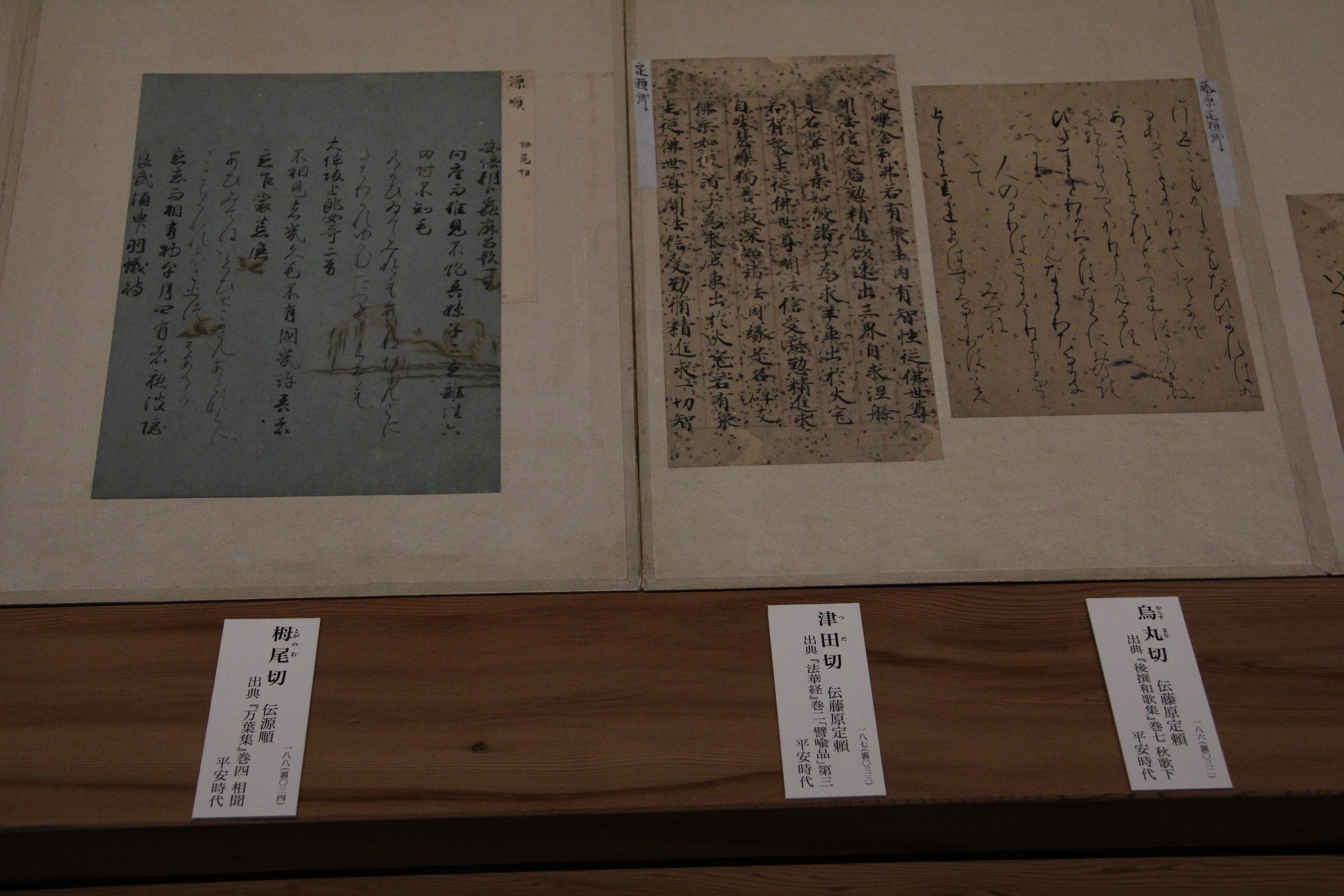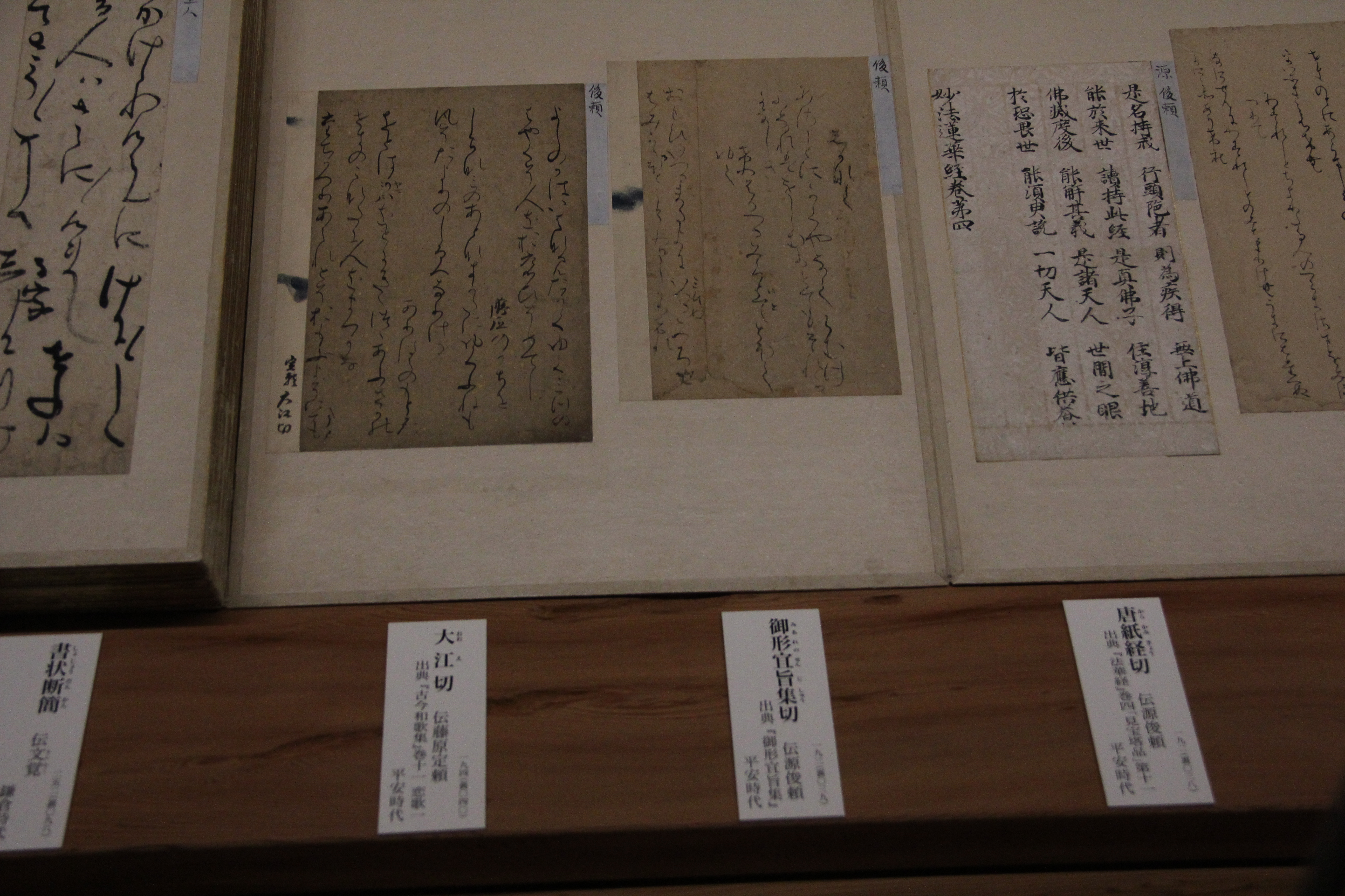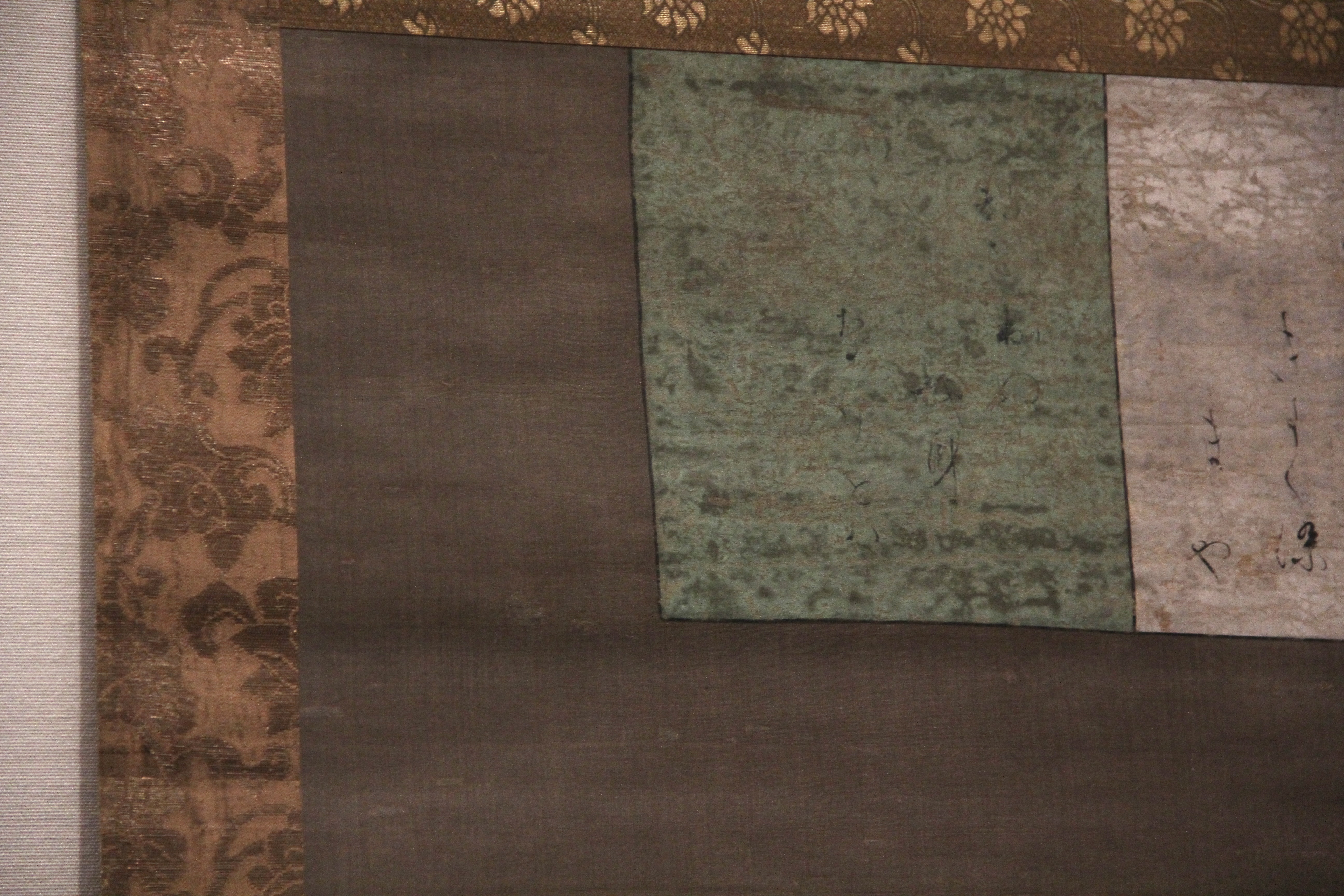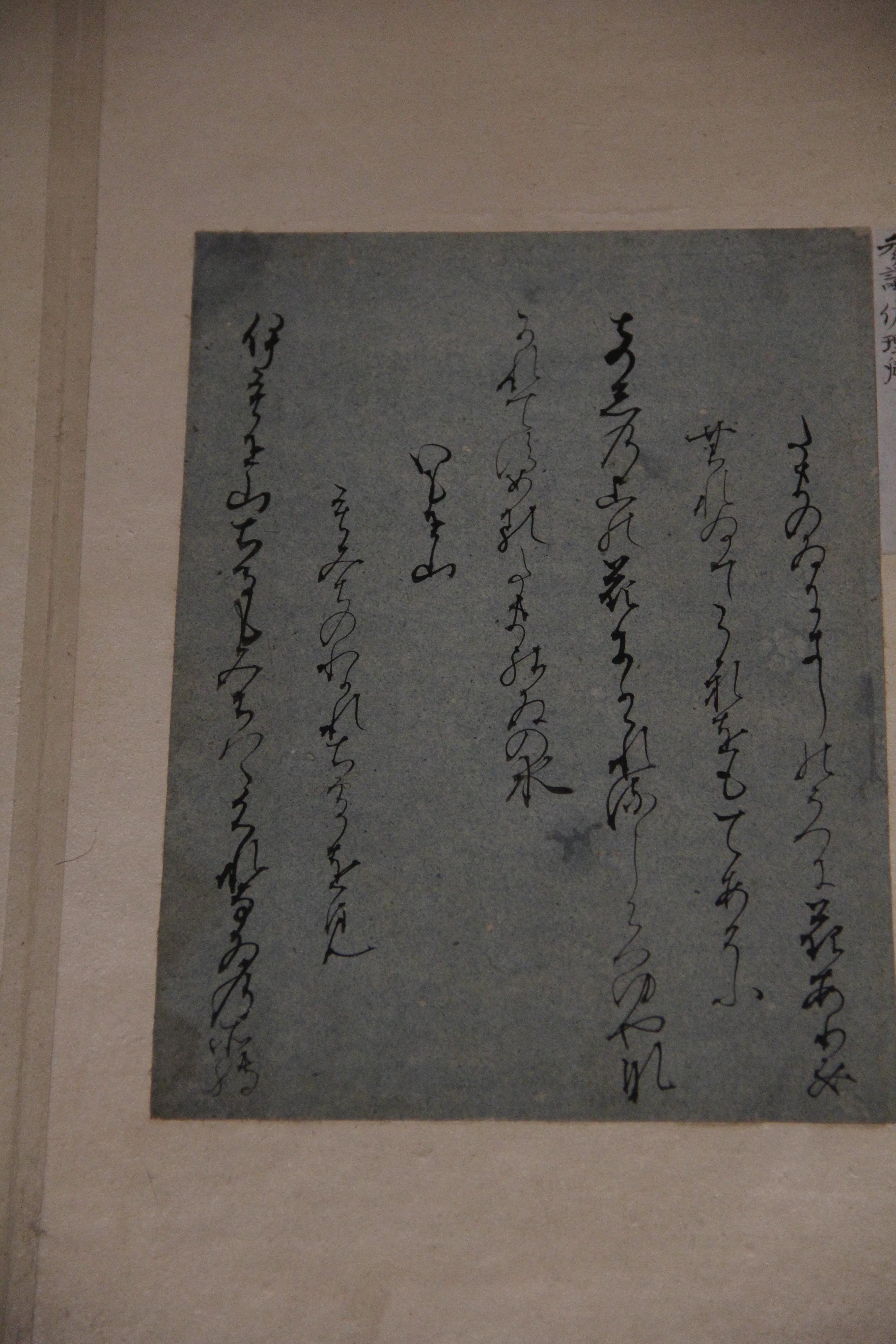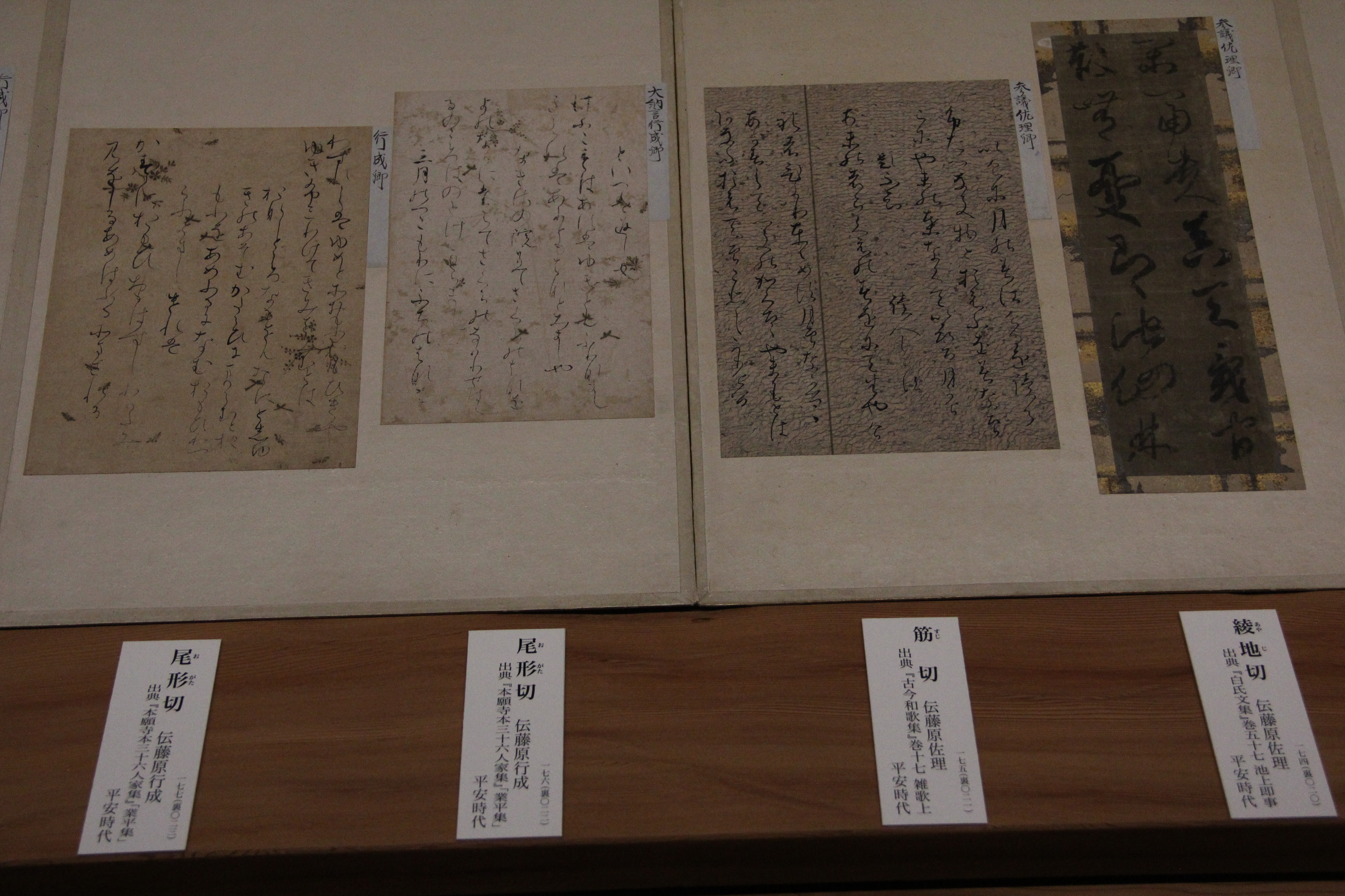 마찬가지로 伝小野道風의 本阿弥切입니다. 12세기 작품이죠. 네... 앞에서 본 작품과는 제법 분위기가 다르죠? 종이도 꽤 장식적이고요. 藤原定実스러운 분위기가 약간 느껴지지 않나.. 그런 생각을 했습니다. 그치만 글씨가 무척이나 작아서 보기 어려웠어요.