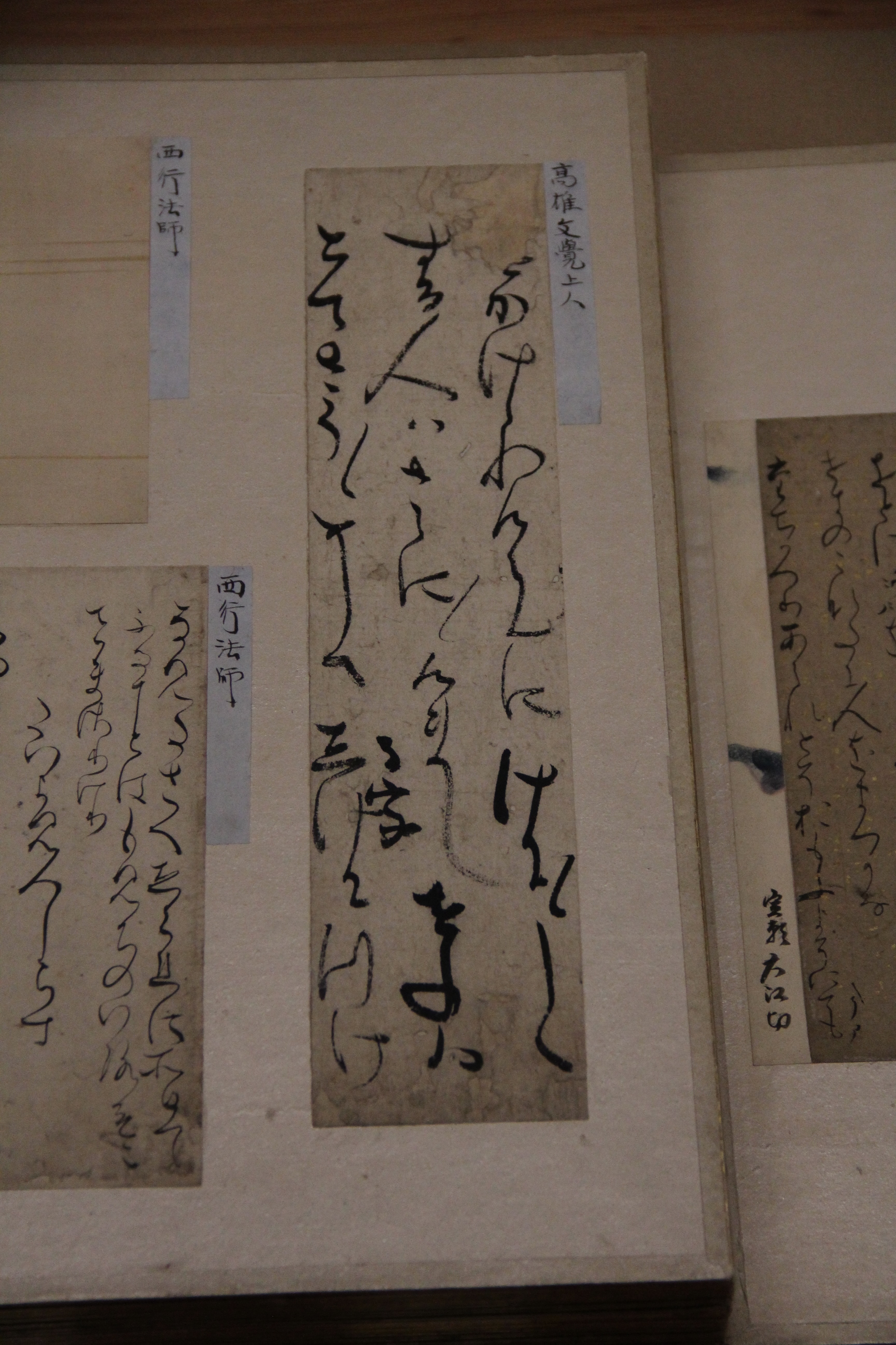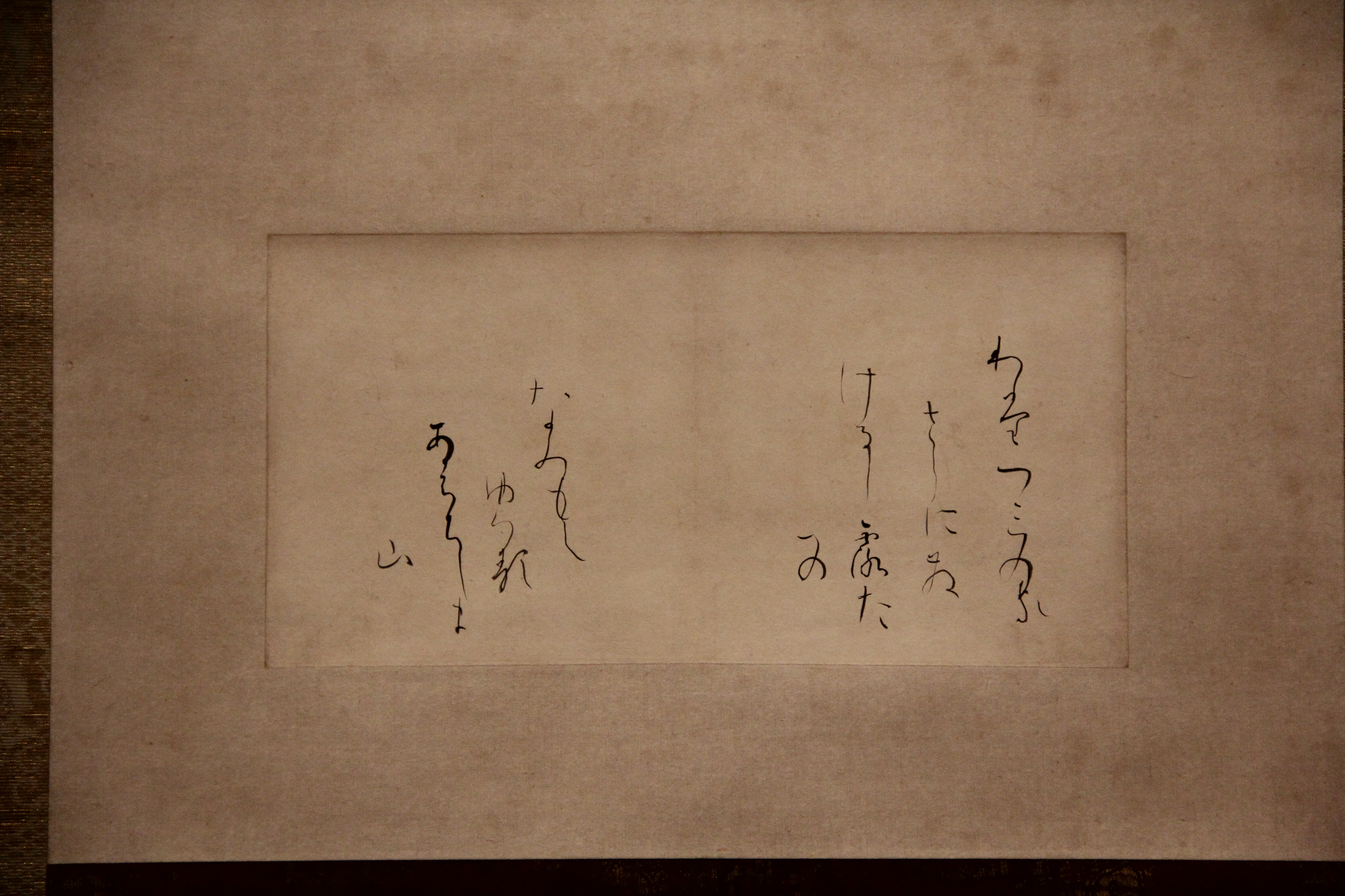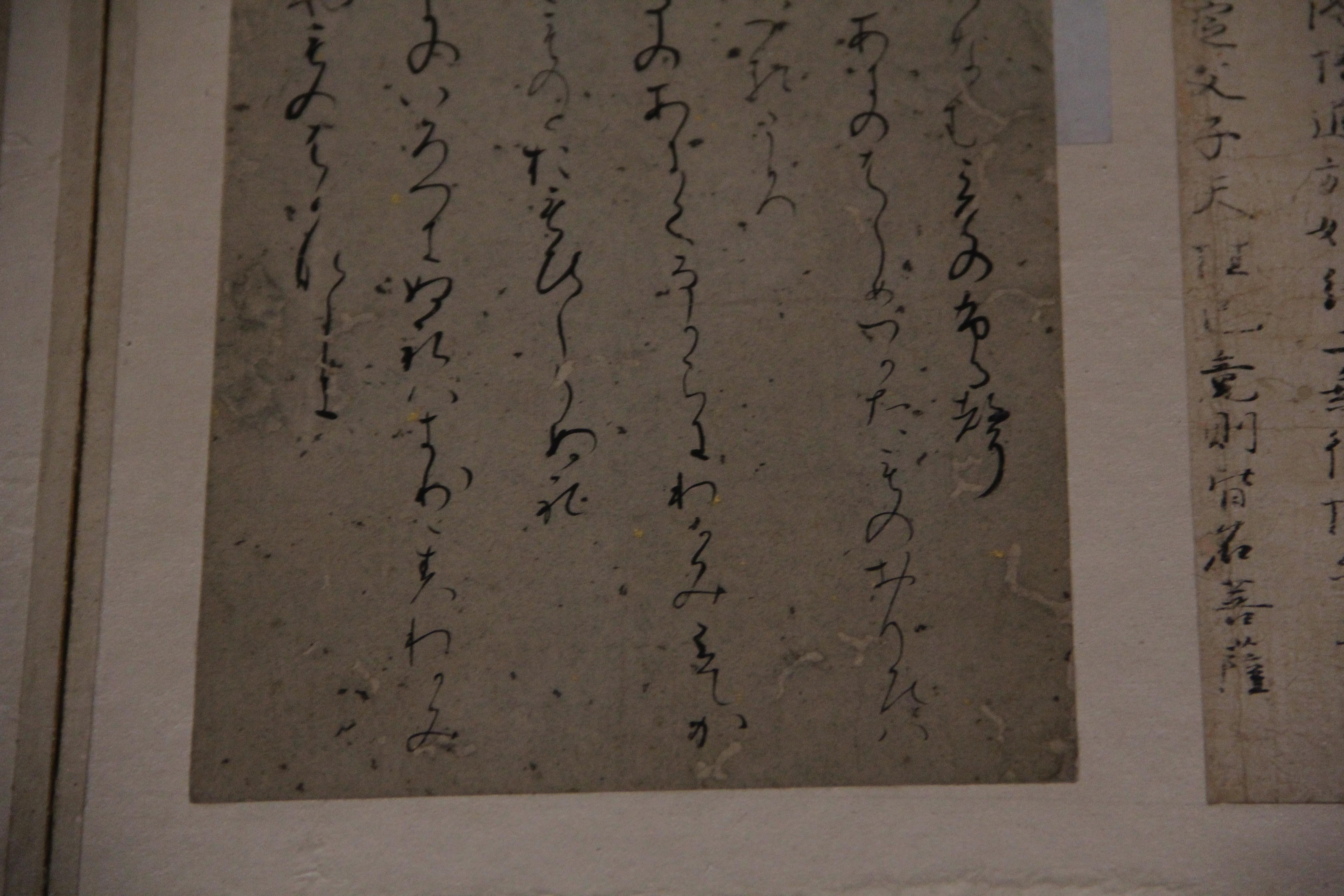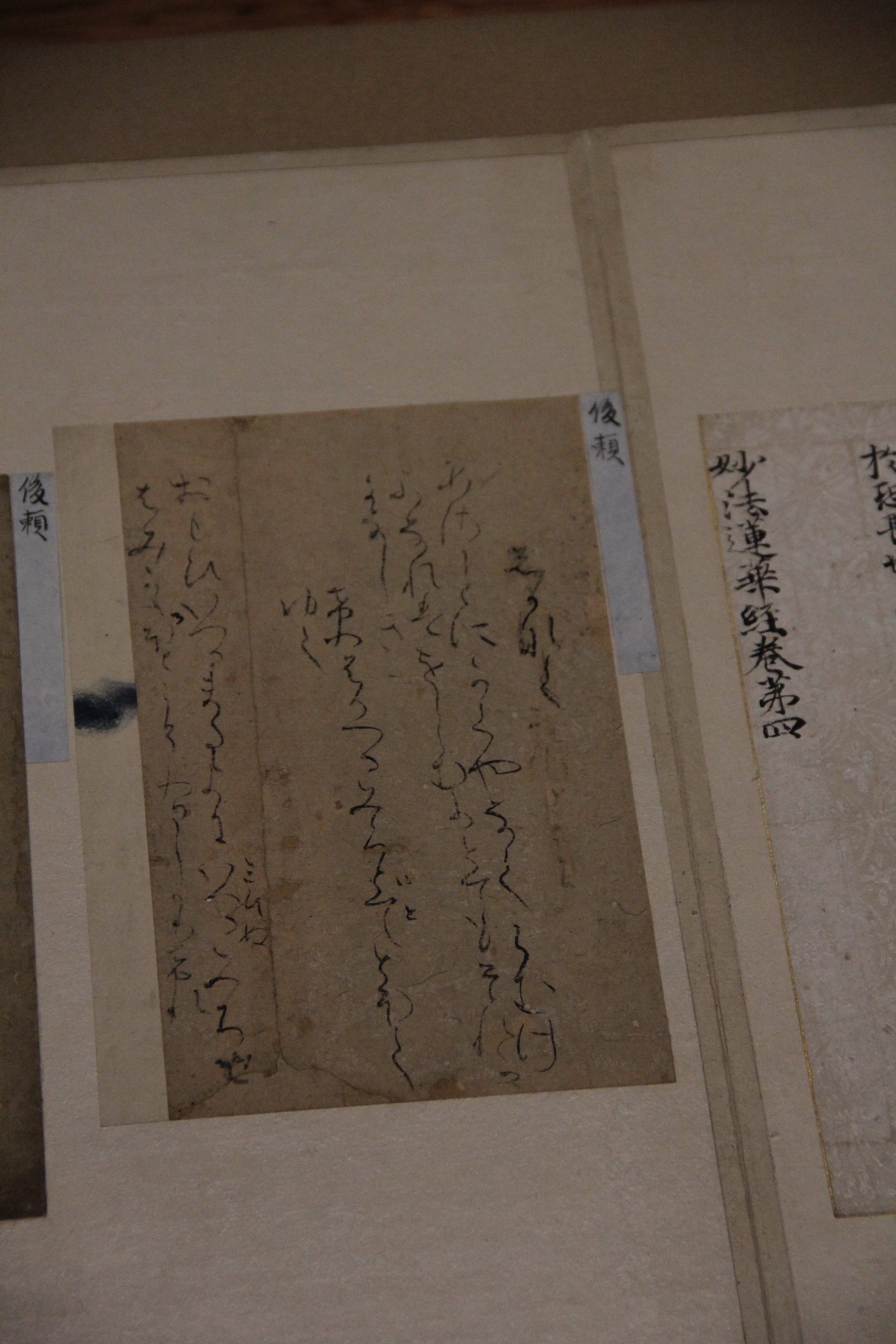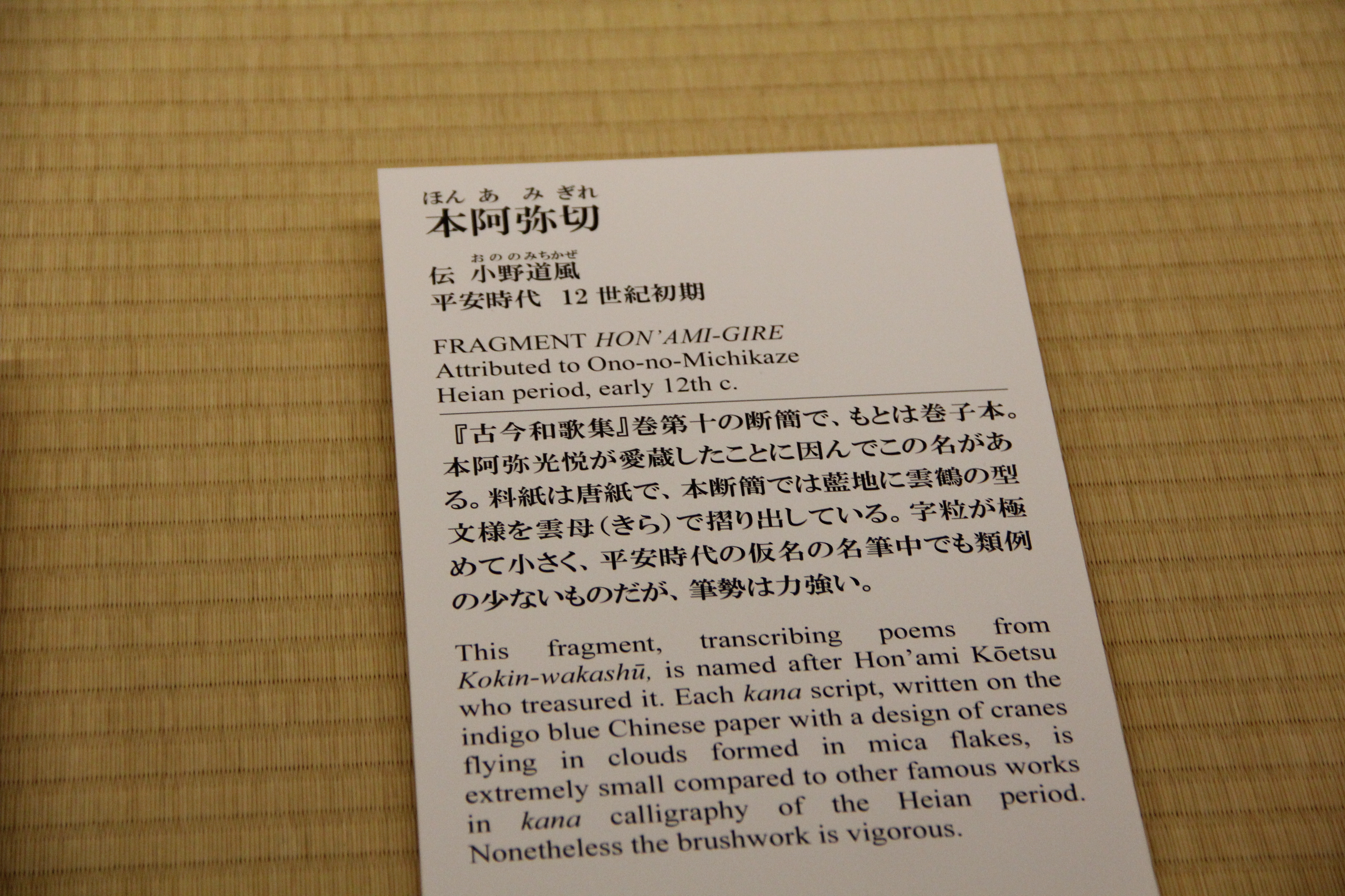 마찬가지로 伝小野道風의 本阿弥切입니다. 12세기 작품이죠. 네... 앞에서 본 작품과는 제법 분위기가 다르죠? 종이도 꽤 장식적이고요. 藤原定実스러운 분위기가 약간 느껴지지 않나.. 그런 생각을 했습니다. 그치만 글씨가 무척이나 작아서 보기 어려웠어요.