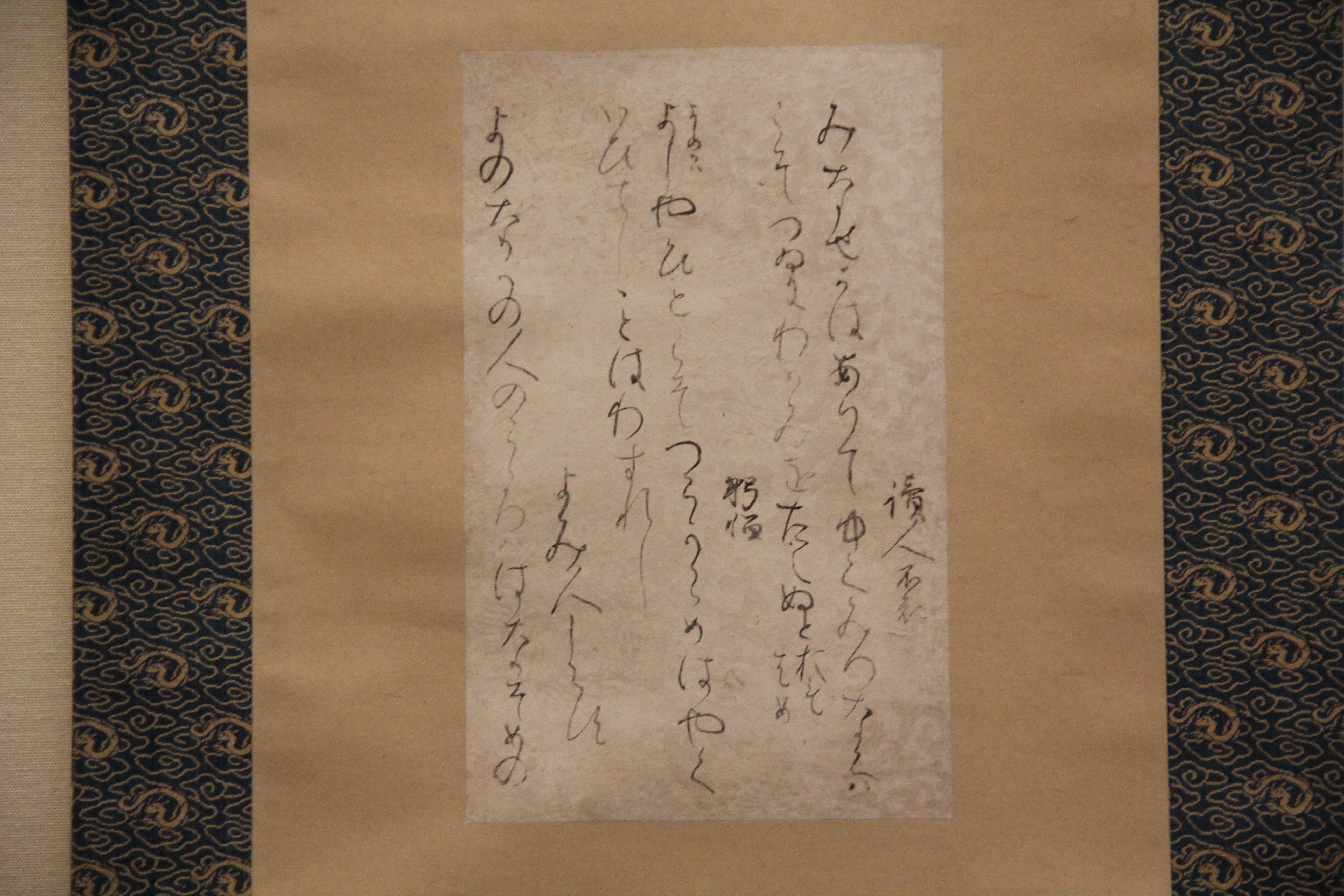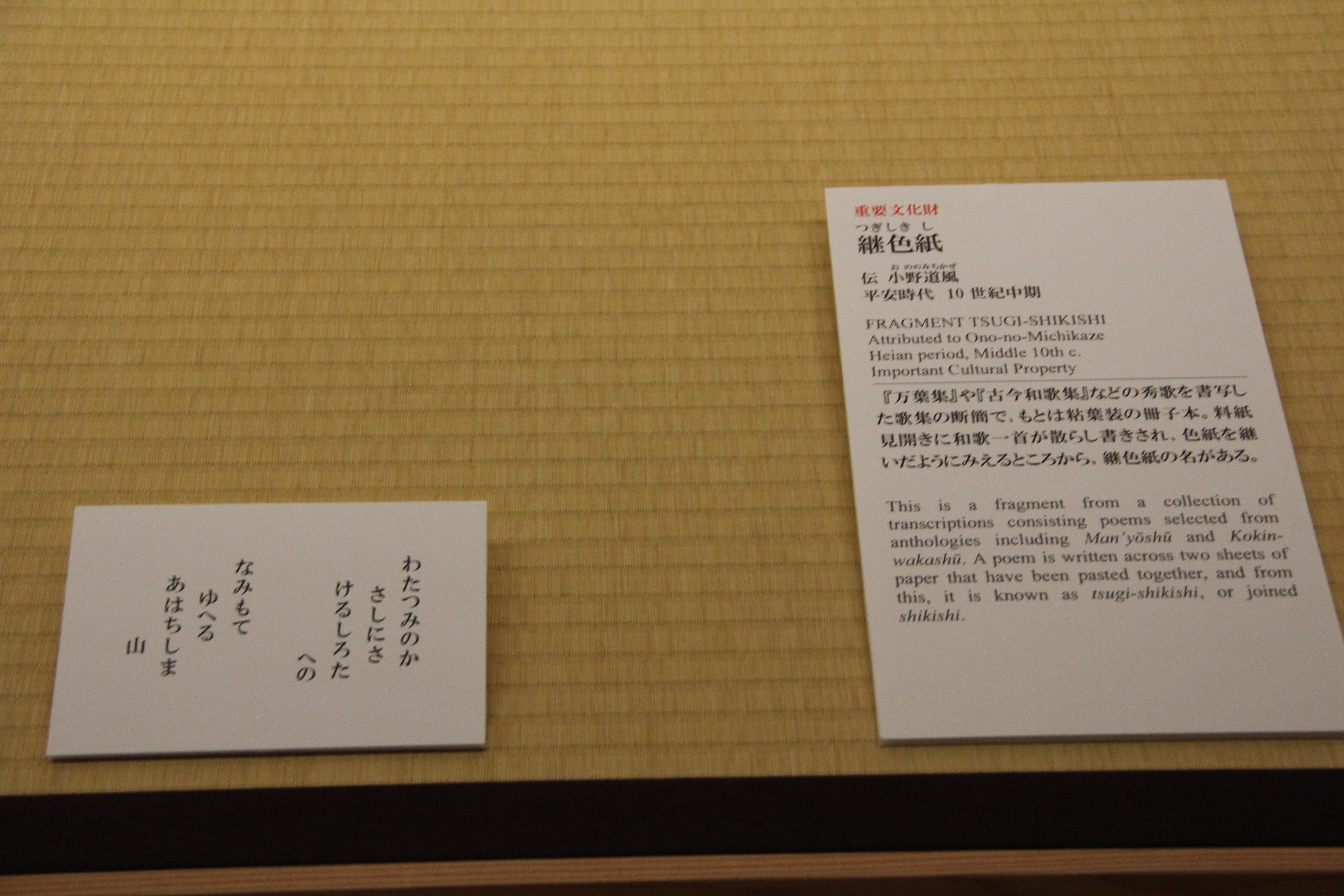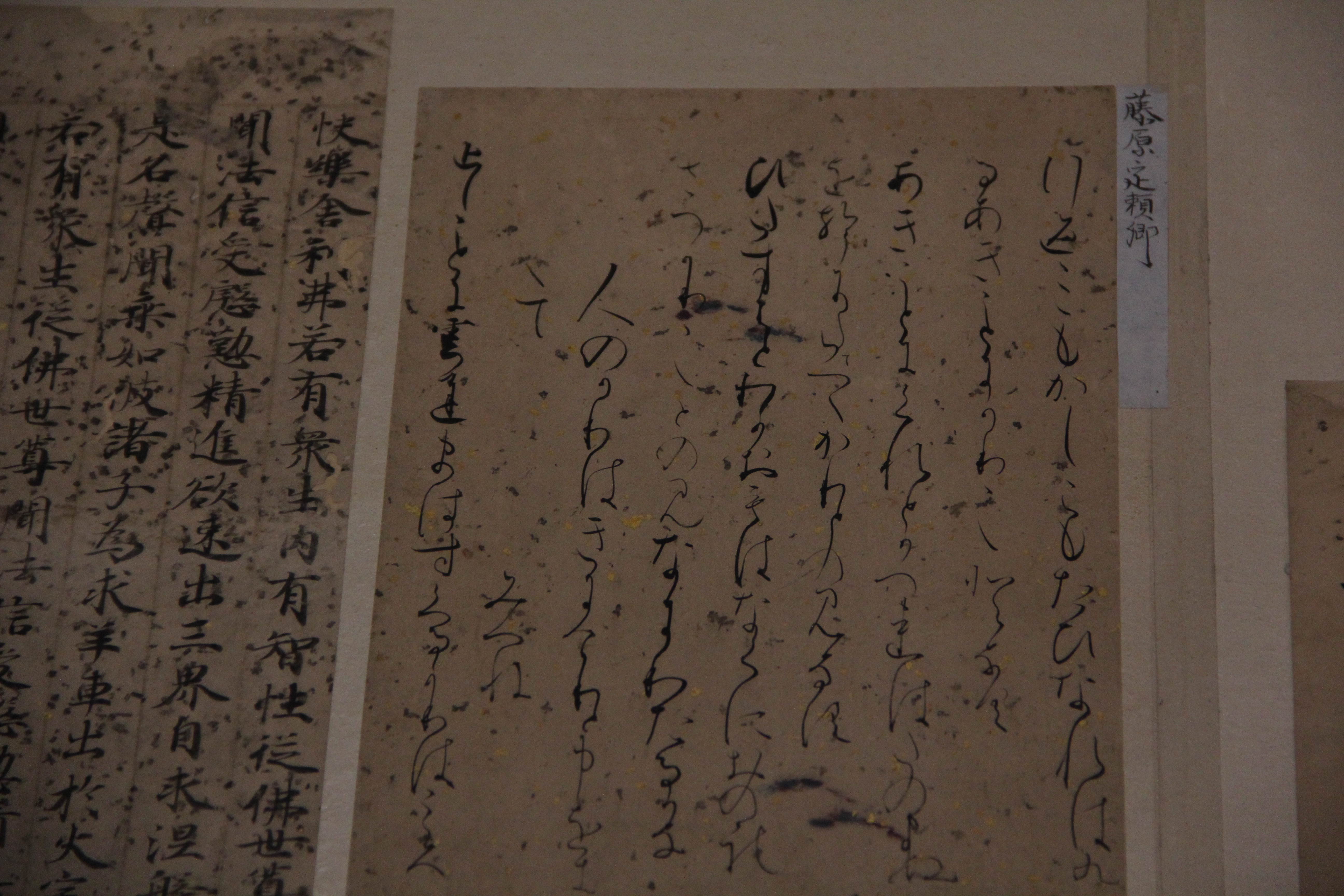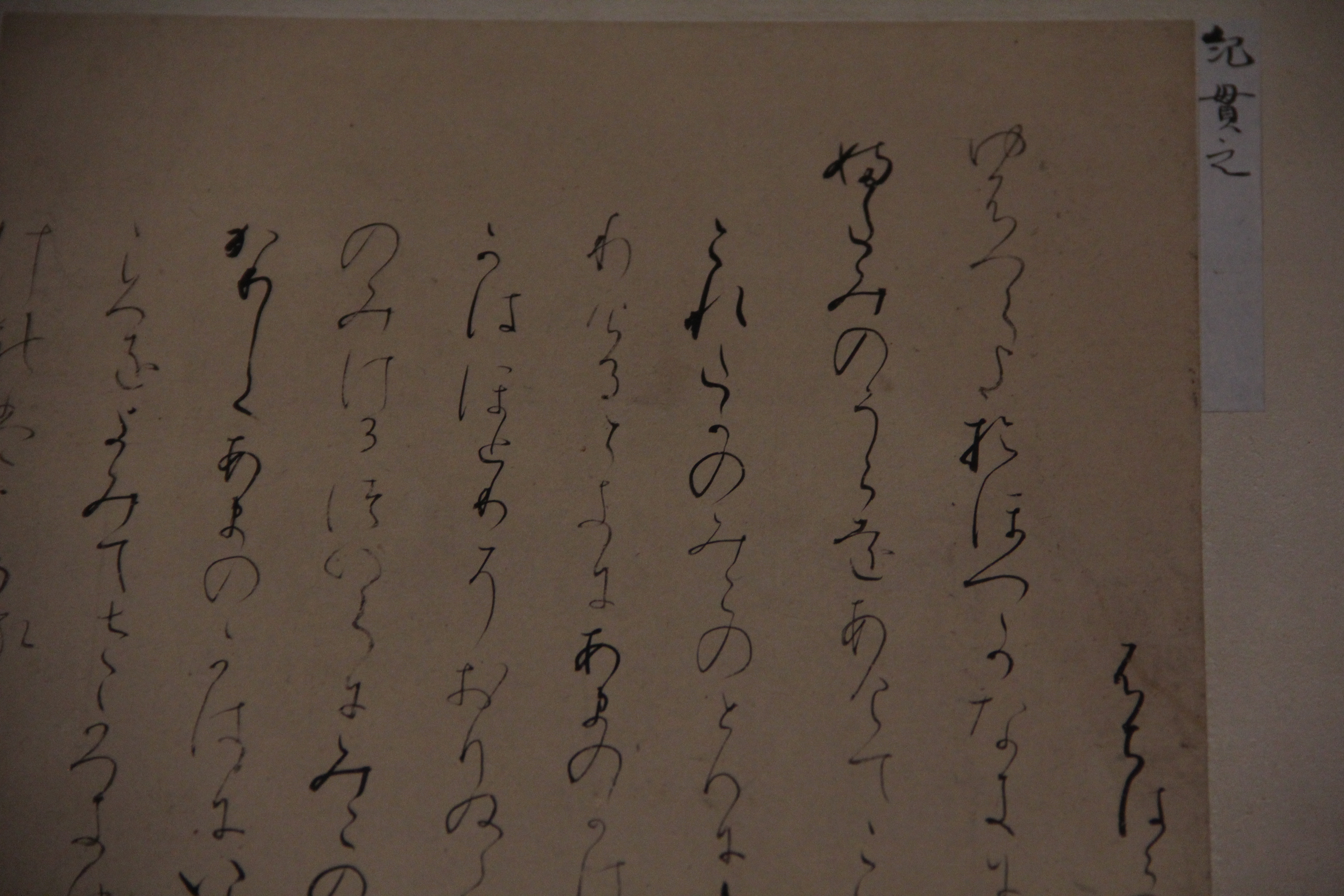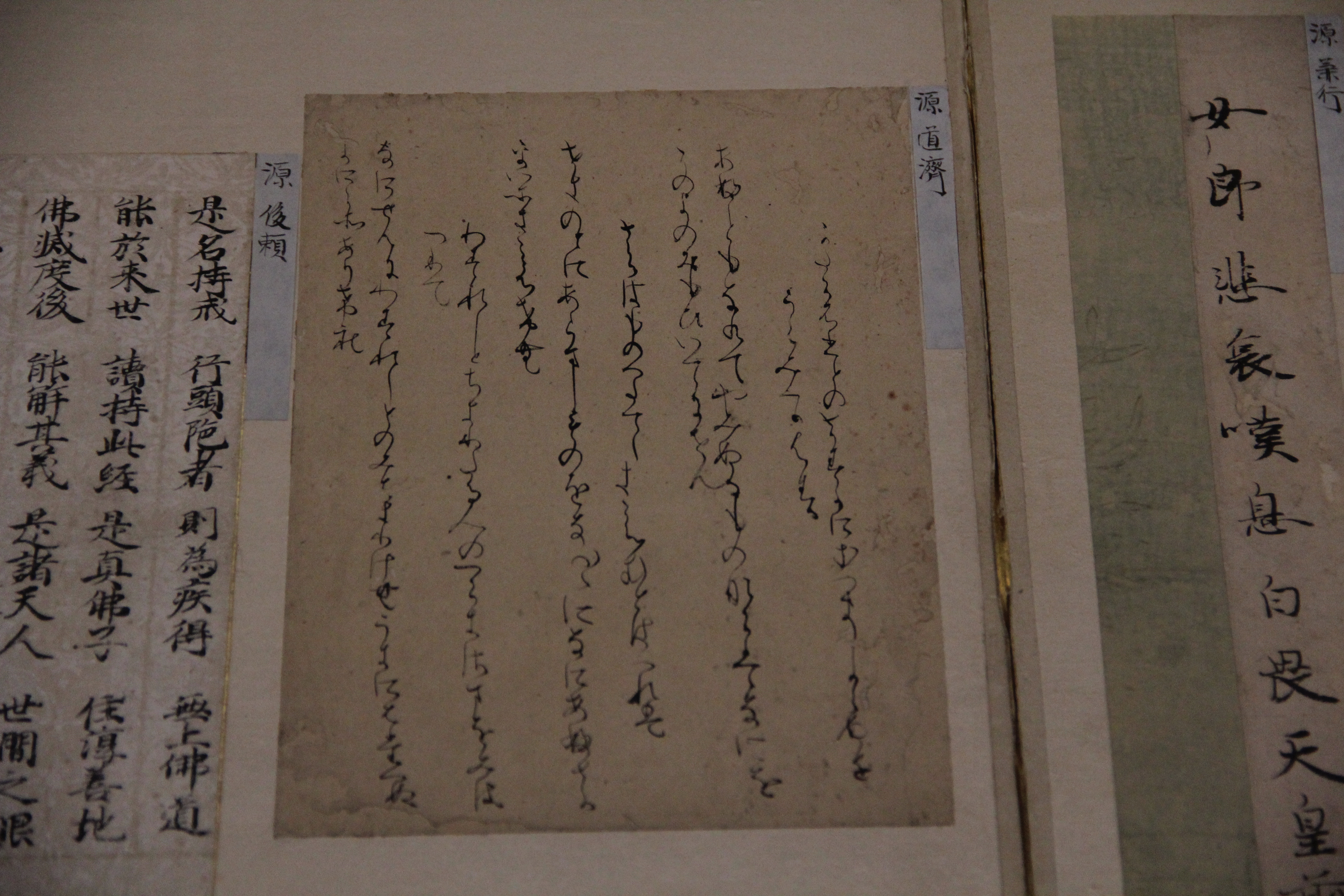 마찬가지로 伝小野道風의 本阿弥切입니다. 12세기 작품이죠. 네... 앞에서 본 작품과는 제법 분위기가 다르죠? 종이도 꽤 장식적이고요. 藤原定実스러운 분위기가 약간 느껴지지 않나.. 그런 생각을 했습니다. 그치만 글씨가 무척이나 작아서 보기 어려웠어요.