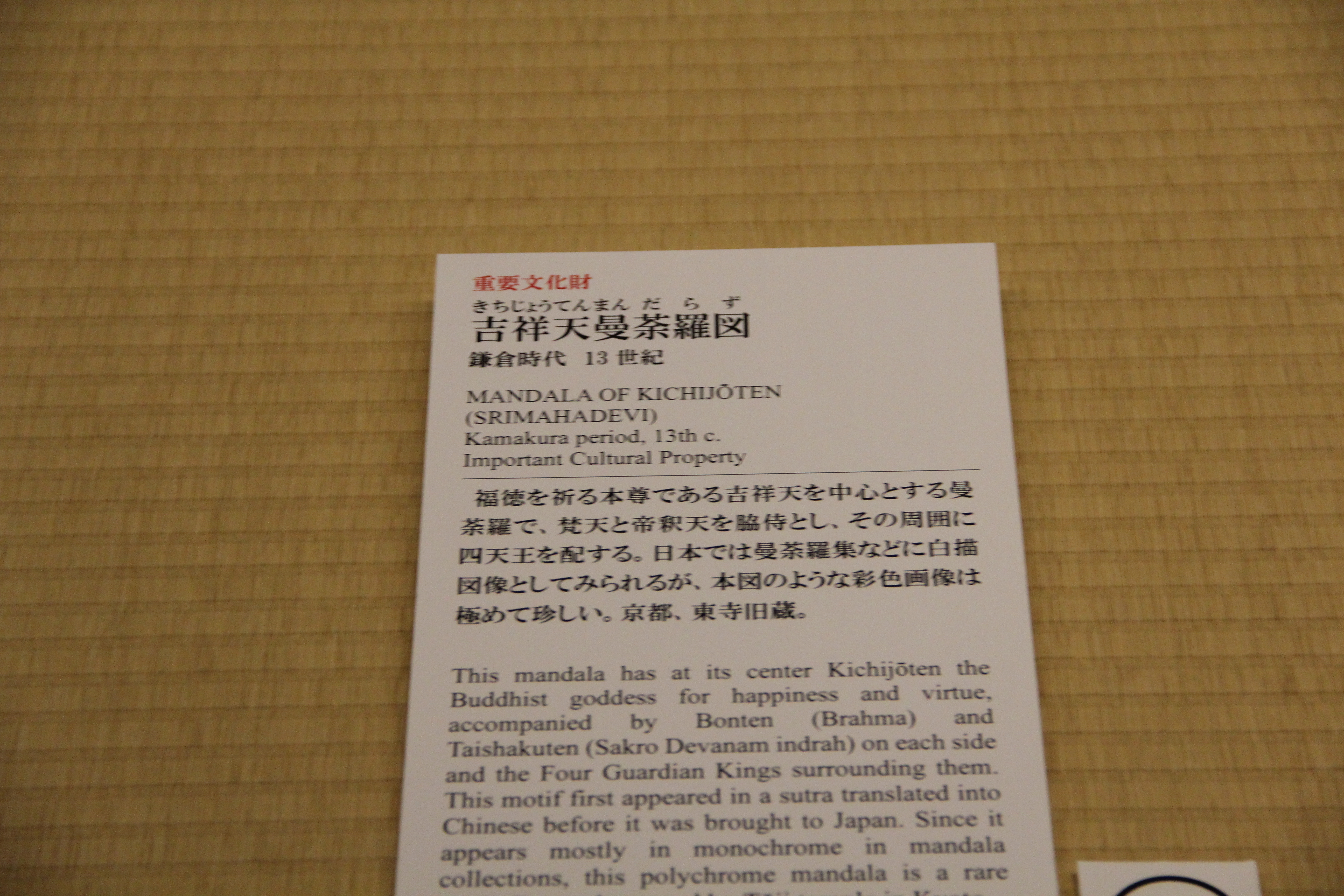 13세기 가마쿠라 시대의 吉祥天曼荼羅図입니다. 복을 빌어주는 길상천을 중심으로 한 만다라 그림입니다. 길상천은, 힌두교의 여신인 락슈미가 불교로 유입되며 모양새를 바꾸었다고 합니다.