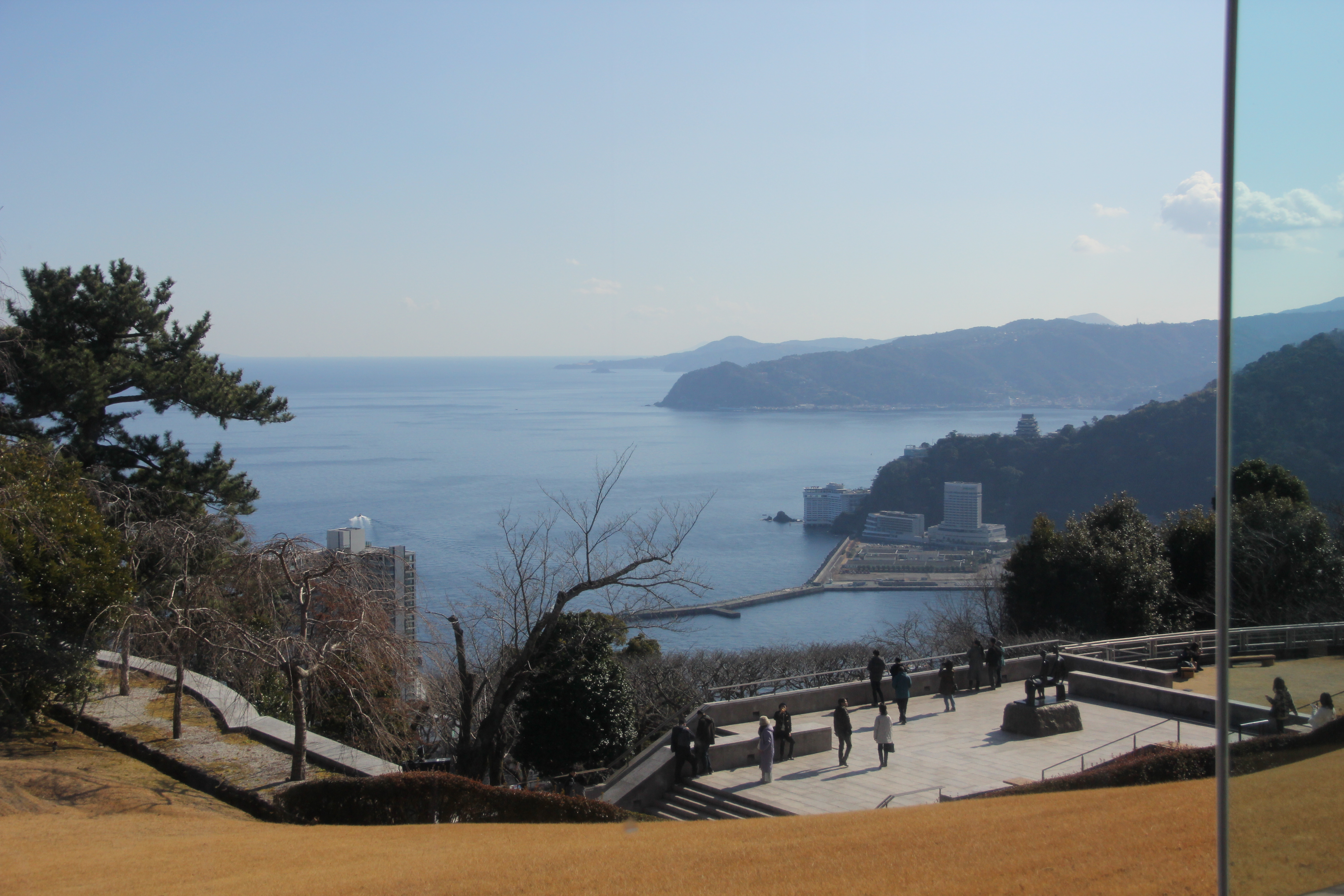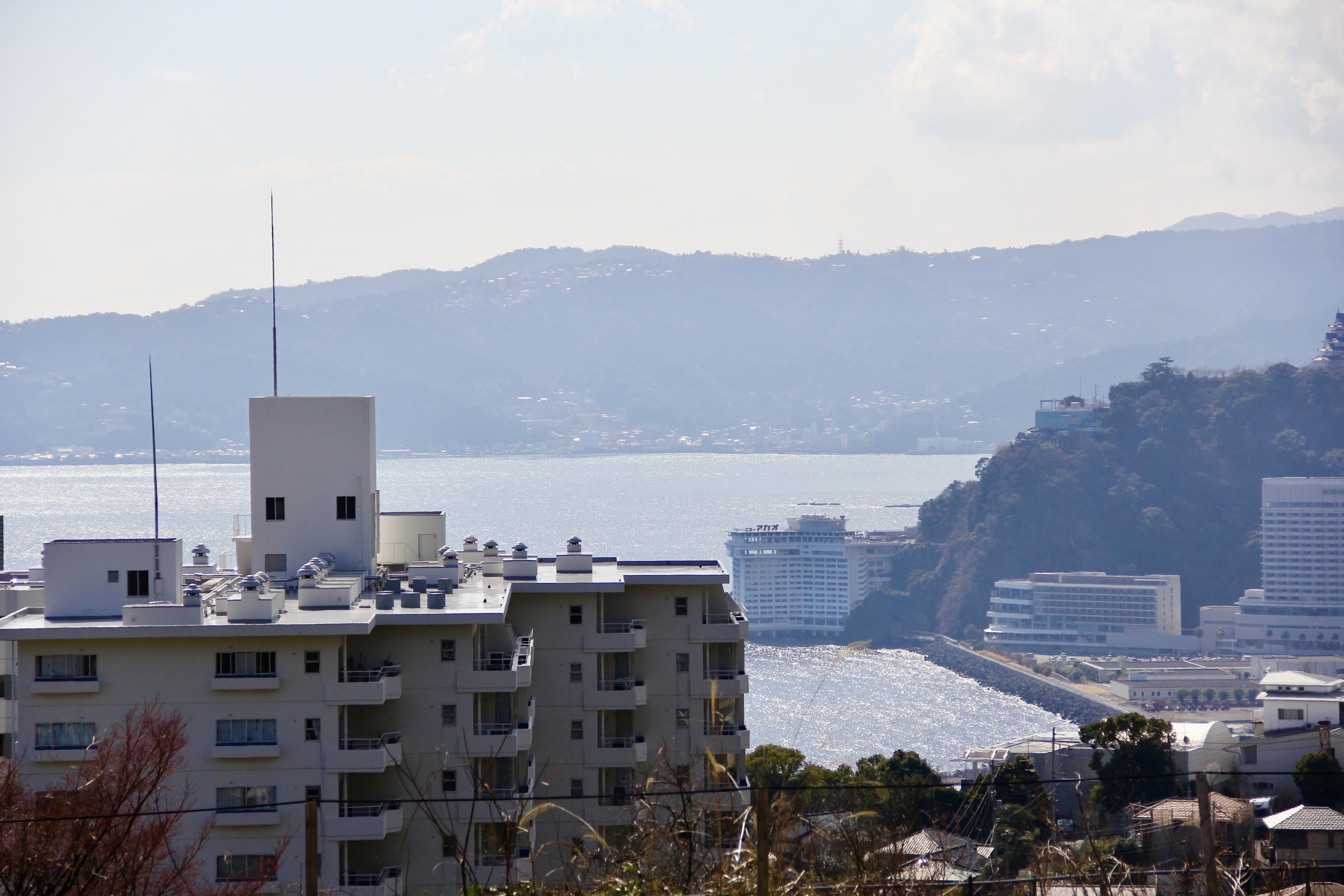 아타미역 앞은 지대가 낮고, 바다에서는 약간 떨어져 있는데다가 앞에서 봤듯이 높은 건물들이 바로 맞은편에 있어 역 앞에서 바다가 보이지는 않는데, 높은 지대로 올라가다보니 아침 햇살을 받아 반짝반짝 빛이 나는 바다가 눈이 부시도록 펼쳐져 있었습니다.