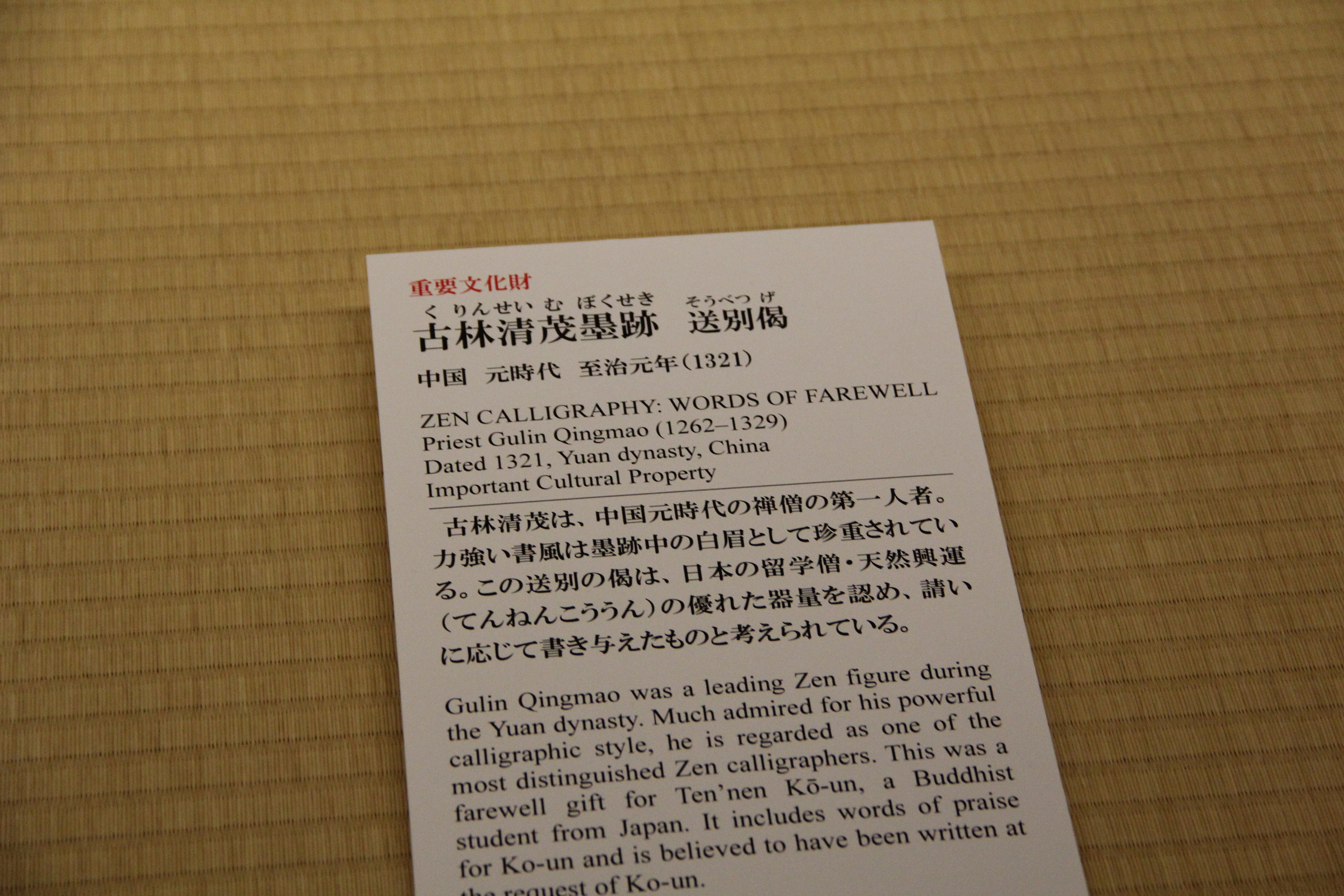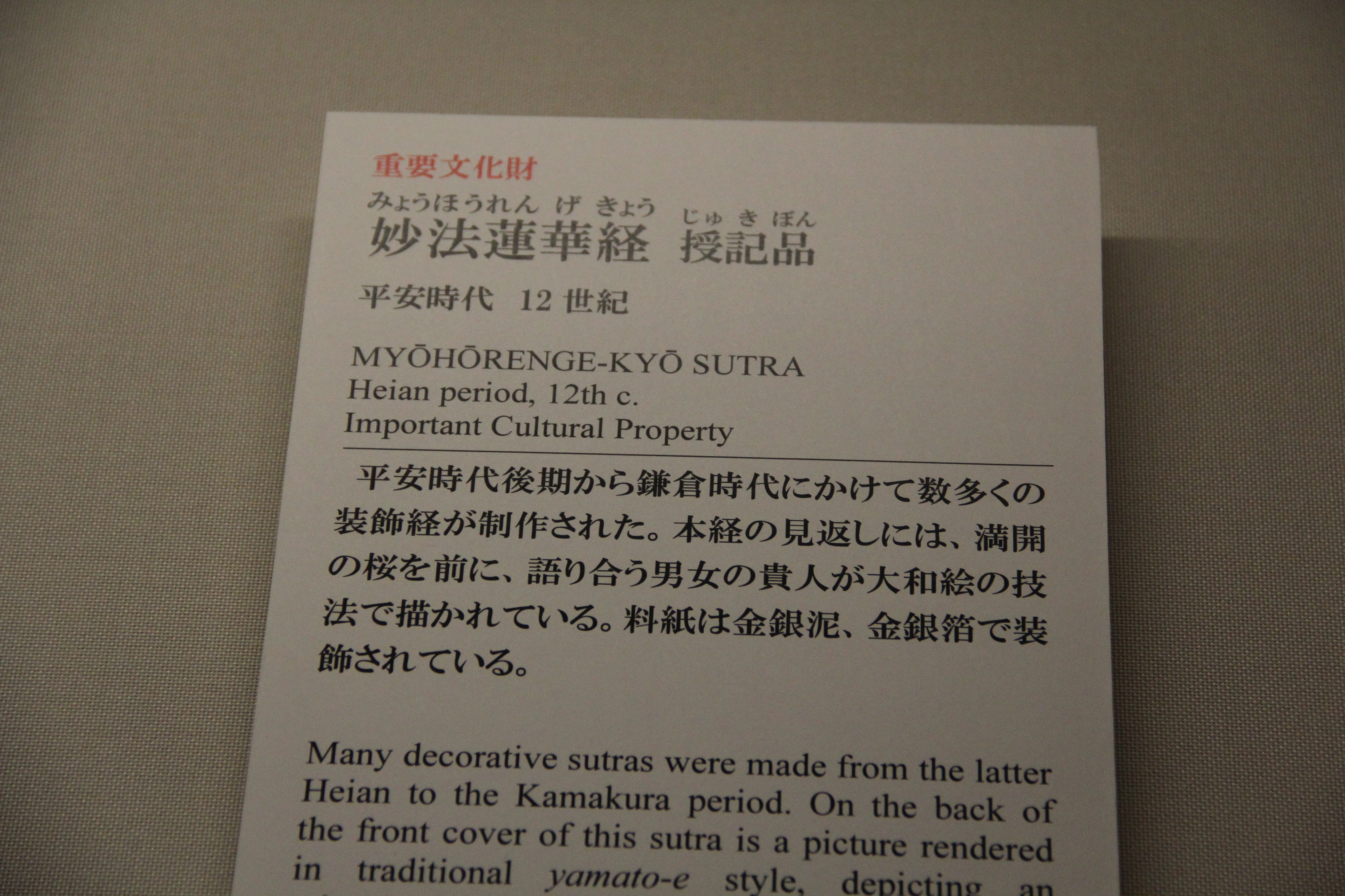 앞에서도 말했듯이, 지금 전시회는 이 미술관의 국보 소장품 세 점을 중심으로, 주요 작품들을 전시하고 있습니다.
