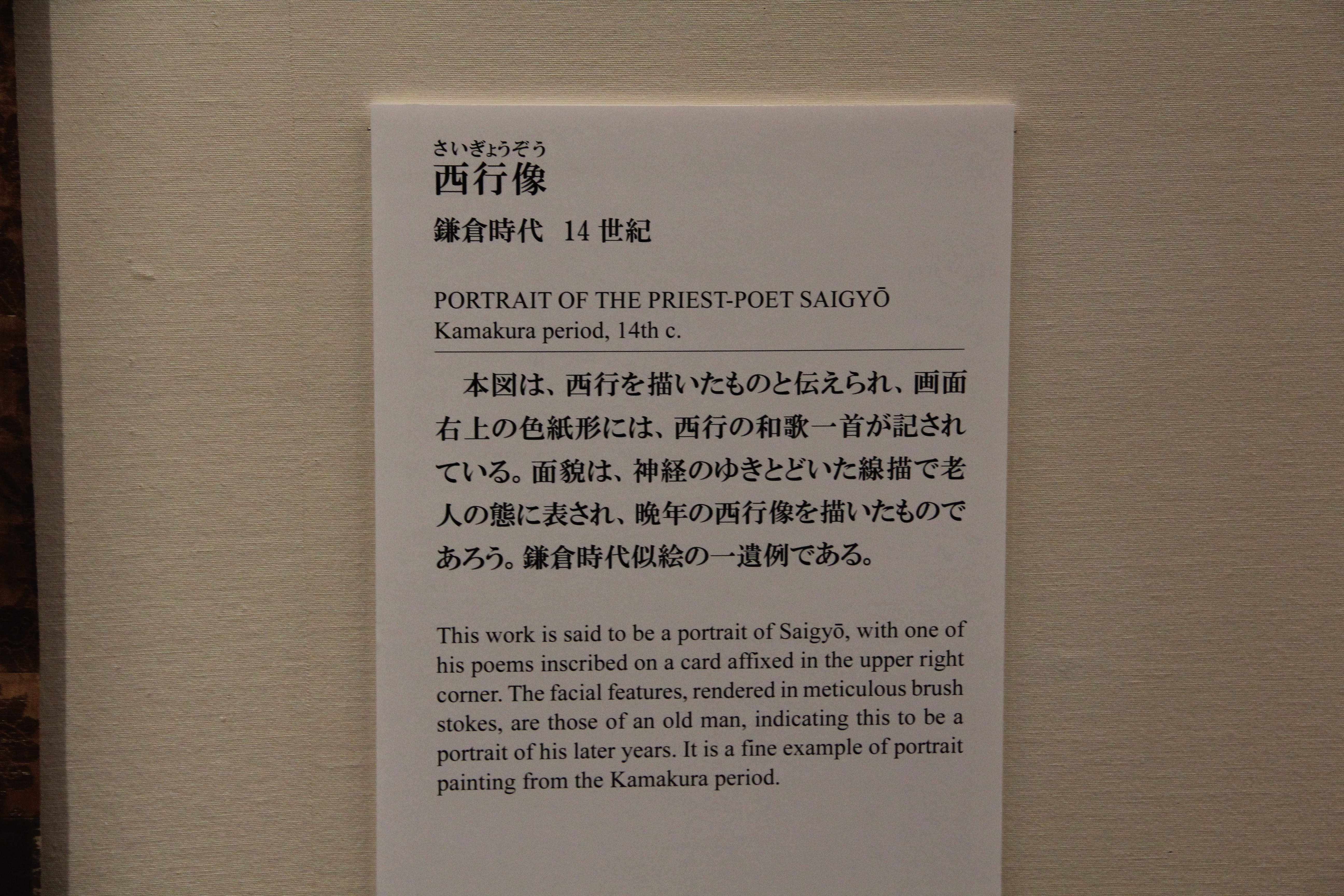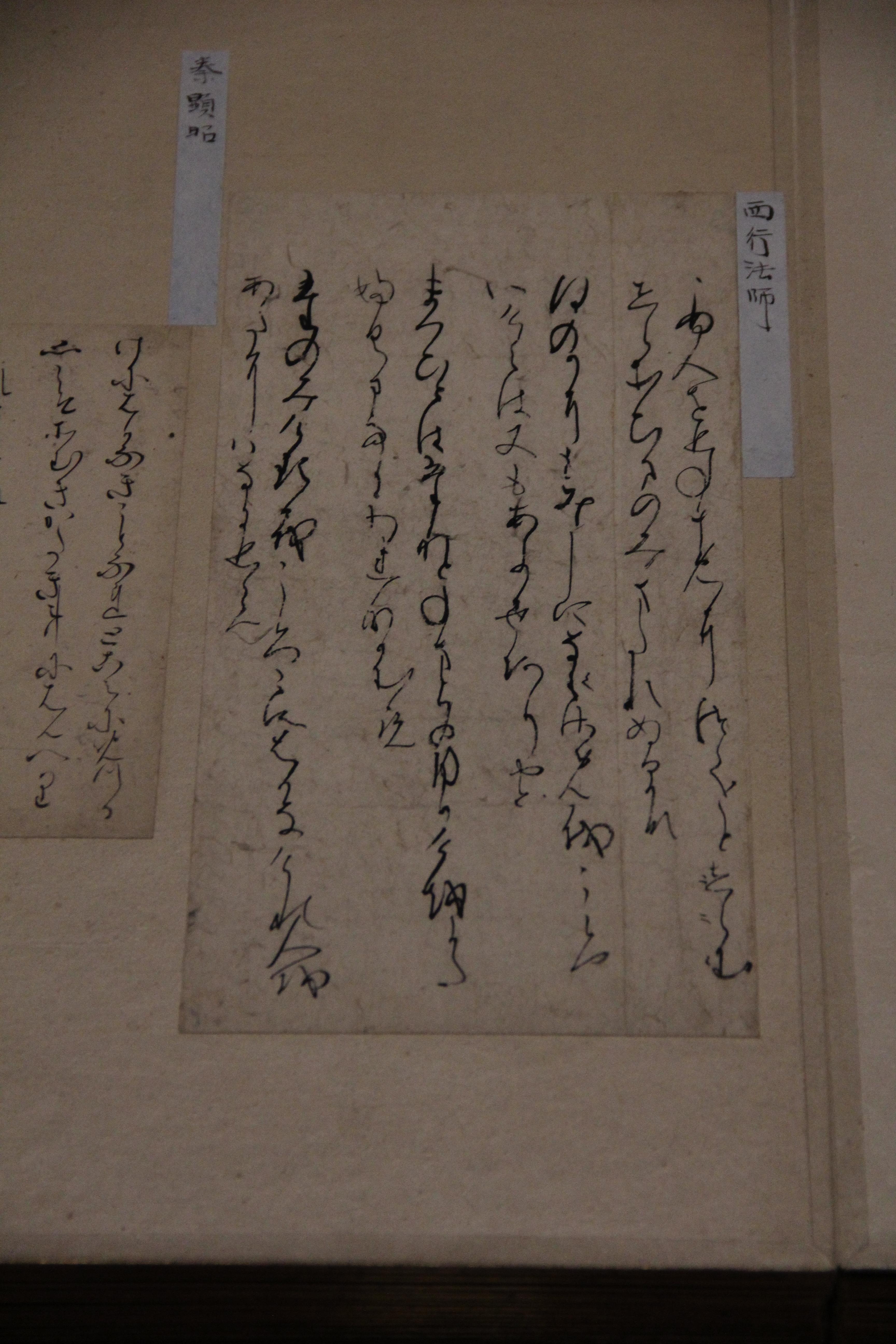 이것도 가마쿠라 시대, 14세기의 西行像입니다. 앞에서 말한 것과 비슷하게 표현하고 있죠? 굳이 그림 안에서 저런 식의 표현을 한 것이 제법 귀여운것 같아요(?)
