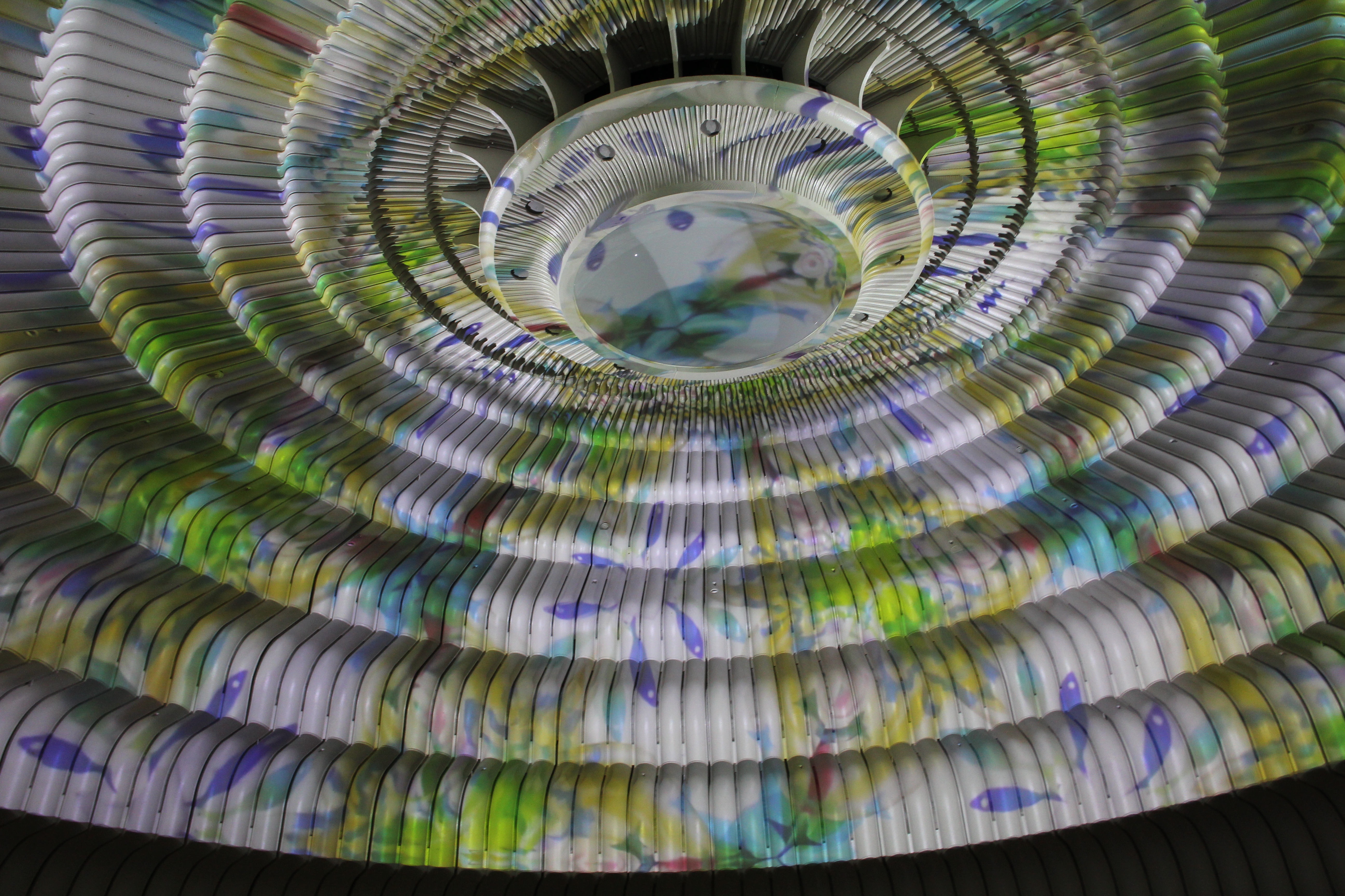 관내 지도가 이런 식으로 되어 있는데, 왼쪽 아래가 가장 처음 입장하는 엔트란스입니다. 천장에 만화경처럼 화려한 영상을 내뿜고 있는 곳이, 세 칸의 에스컬레이터를 올라간 원형 홀이죠. 그러고도 조금 더 에스컬레이터를 올라가서 드디어 '본관 2층'의 전시실에 도착합니다.