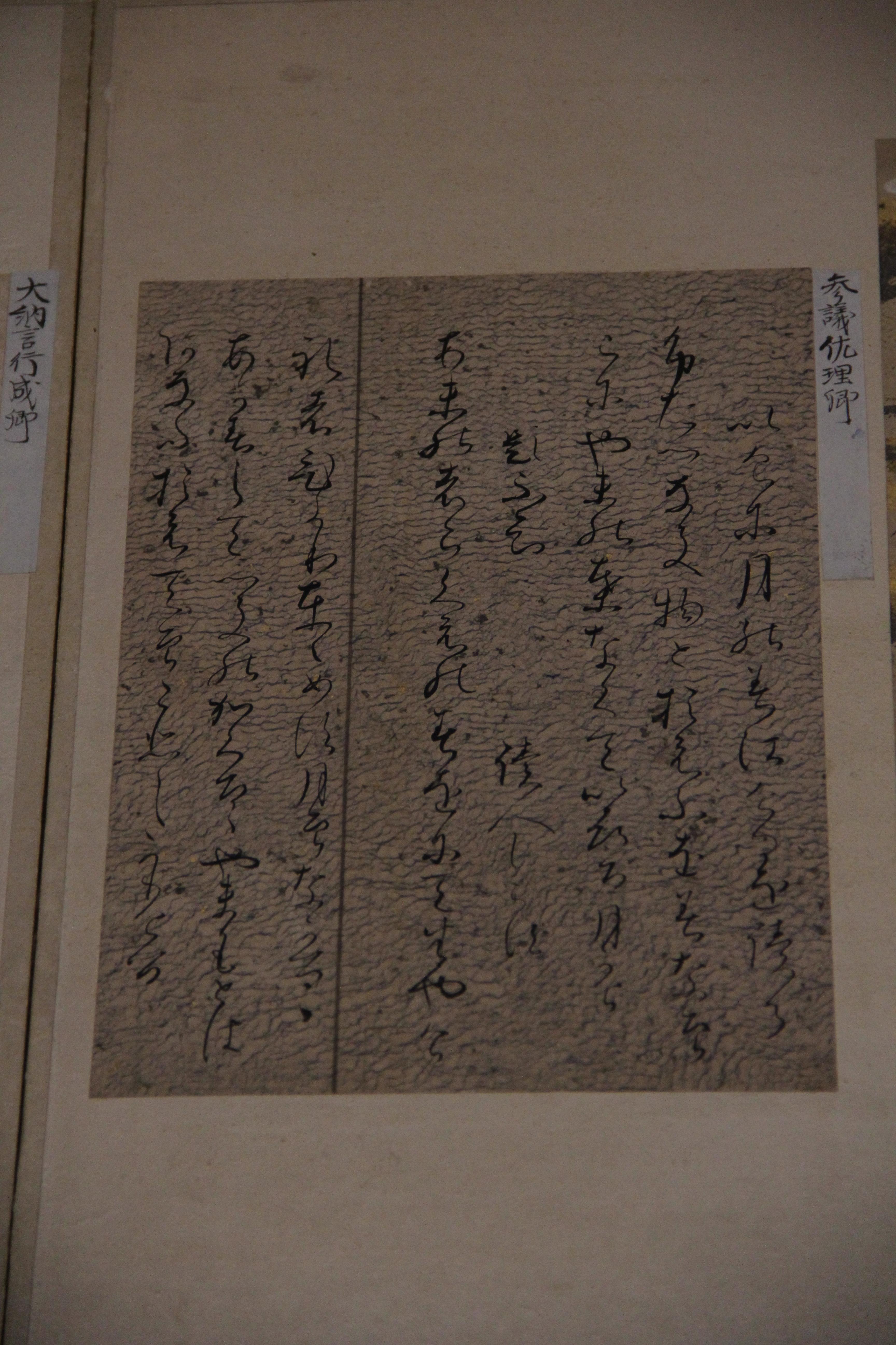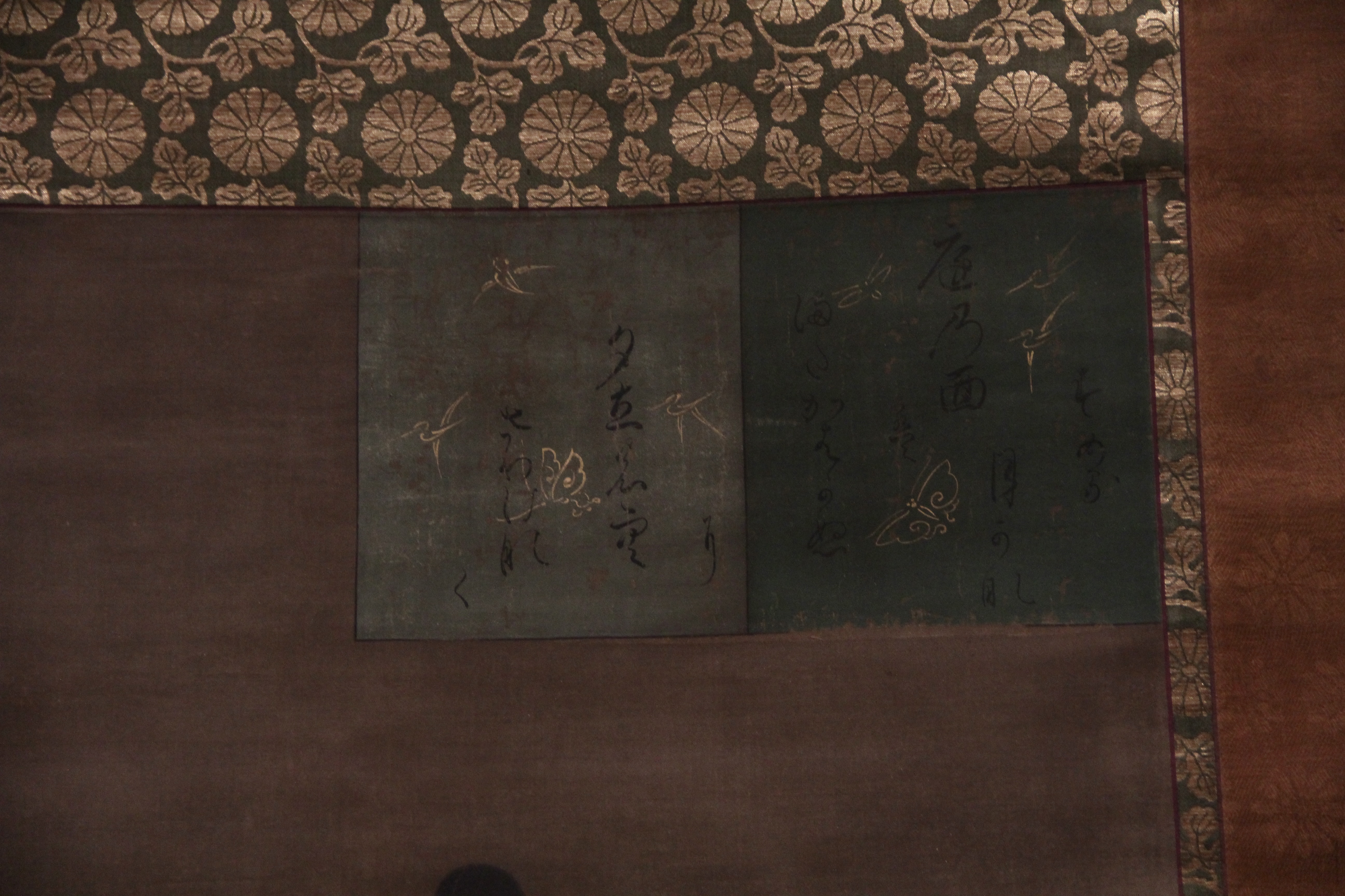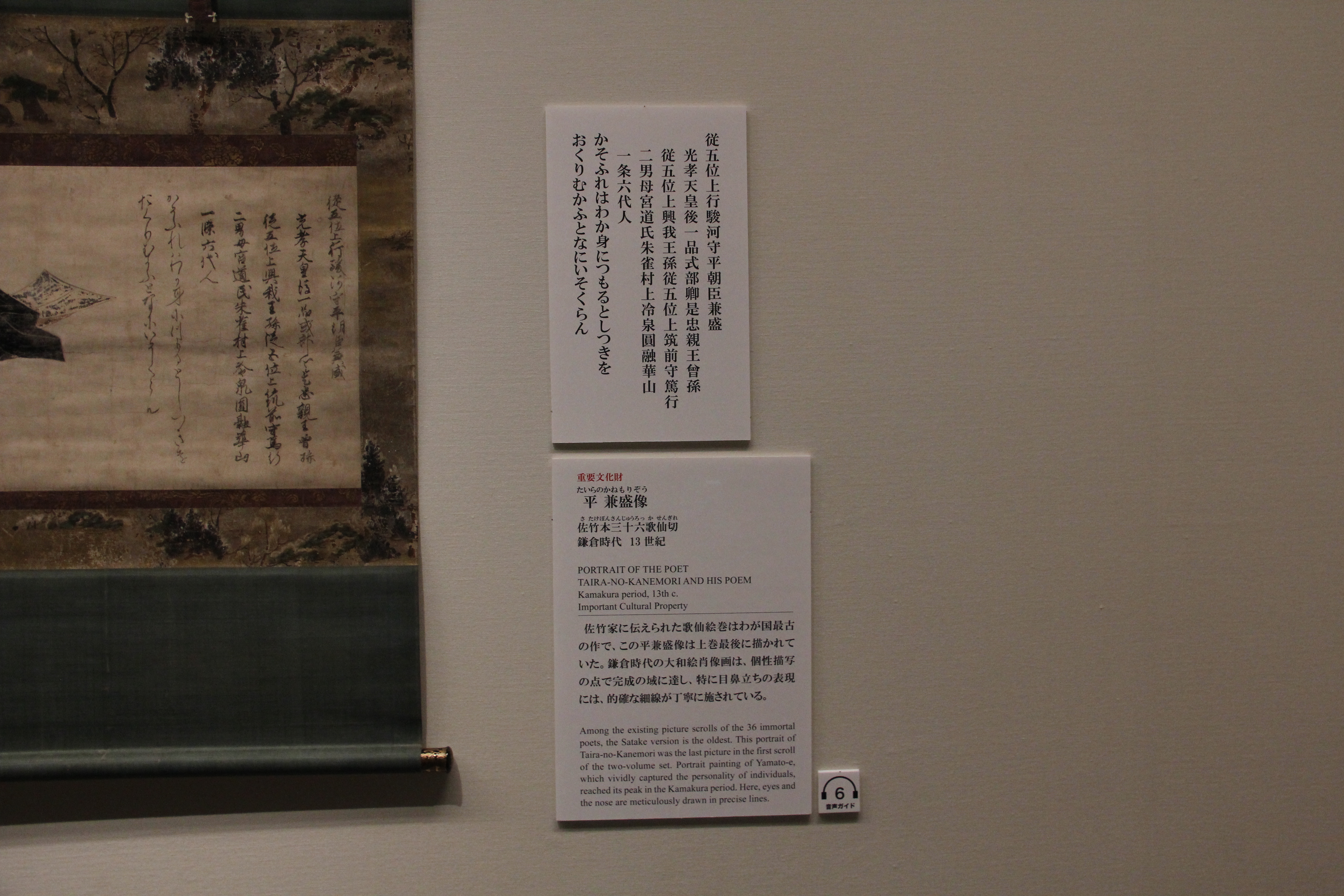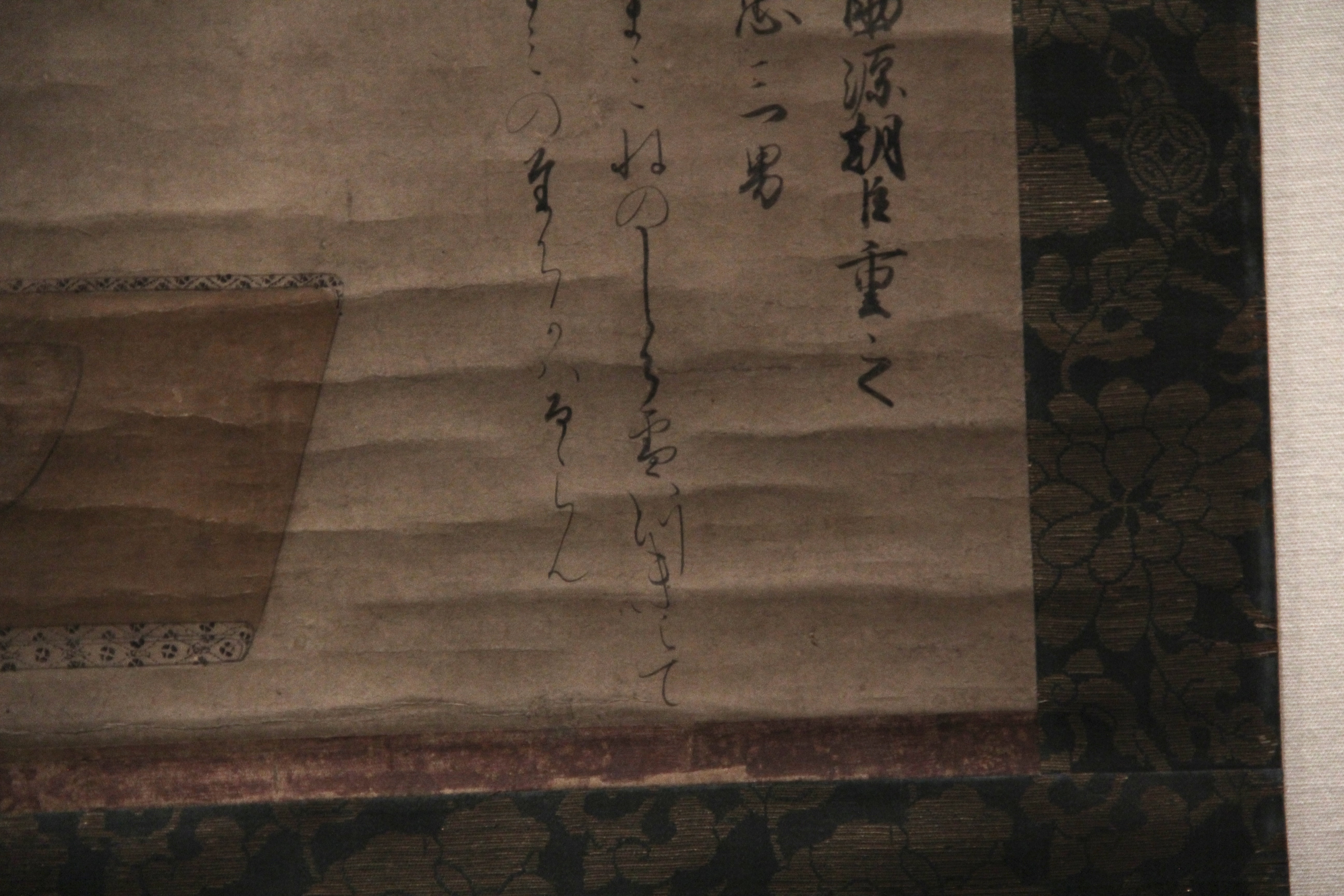 가마쿠라 시대의 源三位頼政像입니다. 이건 글씨가 너무 흐려서 제대로 읽지는 못했는데, 한 폭 위에 色紙처럼 다른 종이를 덧대어 붙인건지 그려넣은건지? 아무튼 그런식으로 표현한게 제법 재미있더라고요. 종이의 색을 약간 다르게 하여 정사각형에 가까운 모양새로 두 장을 나란히 배치하고, 거기에 散らし書き로 시를 표현한게요. (무인들주제에ㅎ)