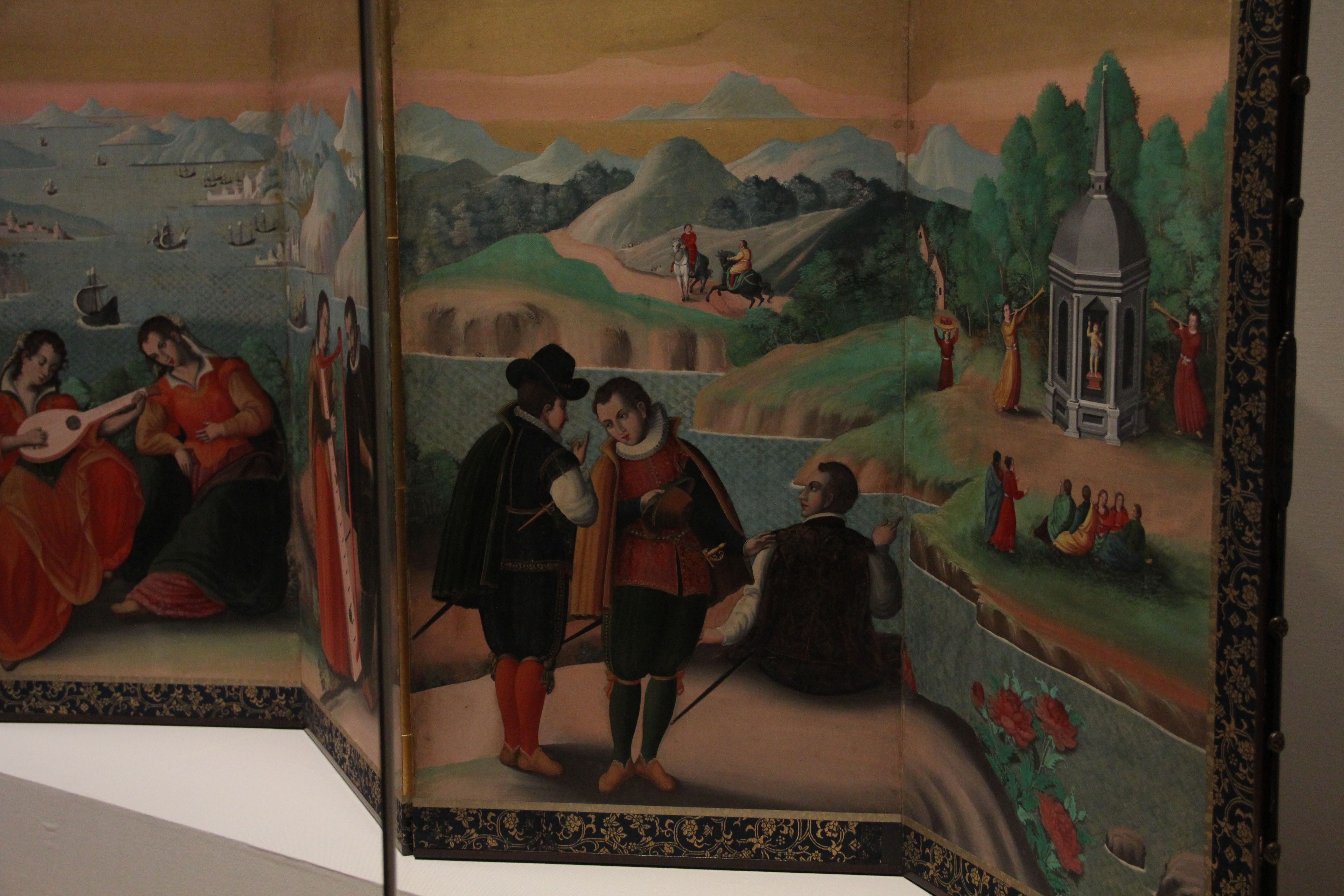 모모야마 시대, 16세기의 洋人奏楽図屏風입니다. 병풍인데 서양화의 기법을 따르고 있는게 무척이나 놀랍죠? 기독교가 들어오면서 유럽 회화의 주제성이나 기술등 또한 동시에 일본인들에게 전해졌다고 합니다. 인물의 표현은, 에마키 속에서 그려지던 것들이거나 원경에 산이 배치되어 있는 것은 기존 일본에서 그려지던 풍경화를 연상시키는것 같기도 합니다. 물론 그렇지만, 16세기에 외래 기법을 이정도로 재현해낼 수 있었다는 것은 정말 대단합니다.