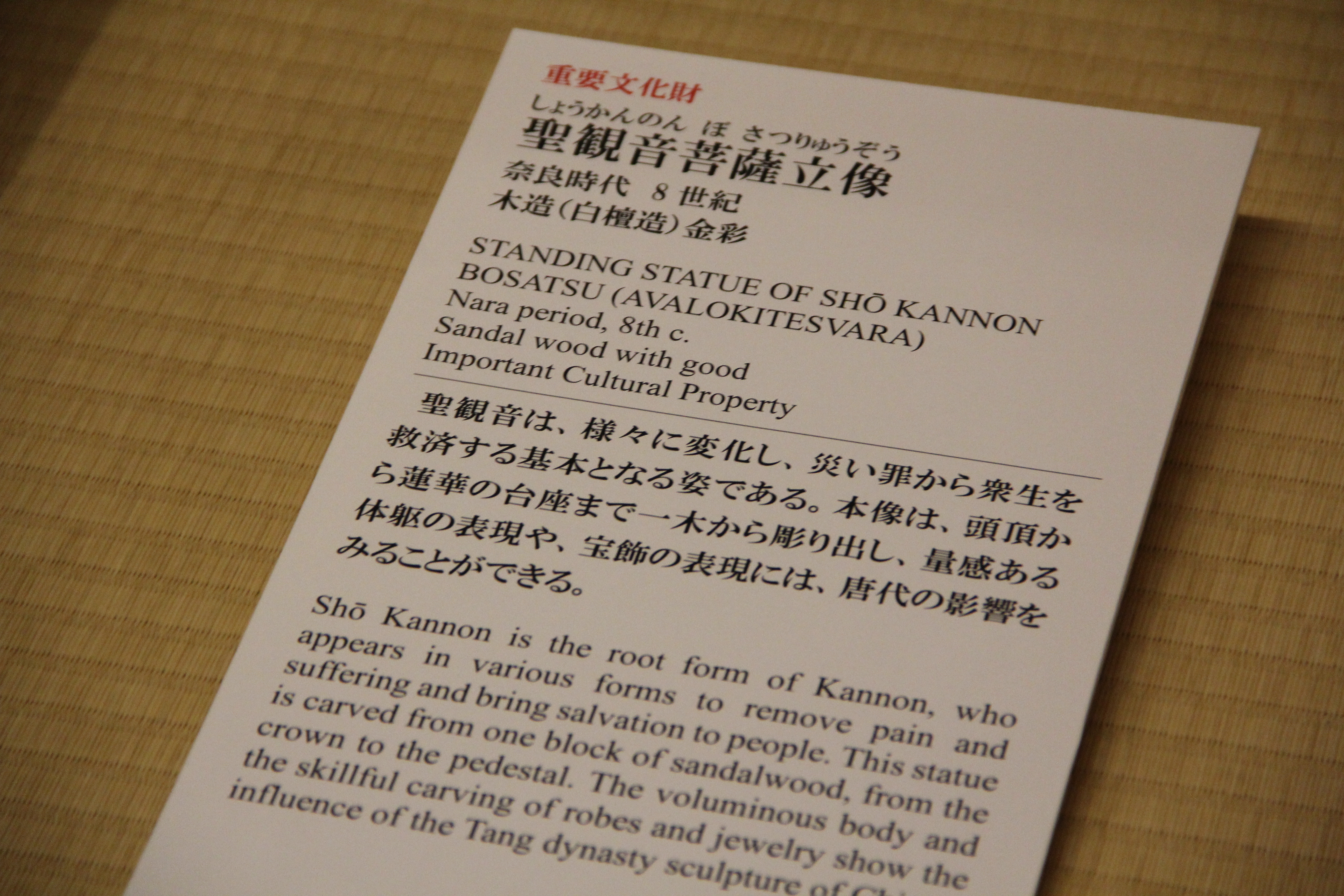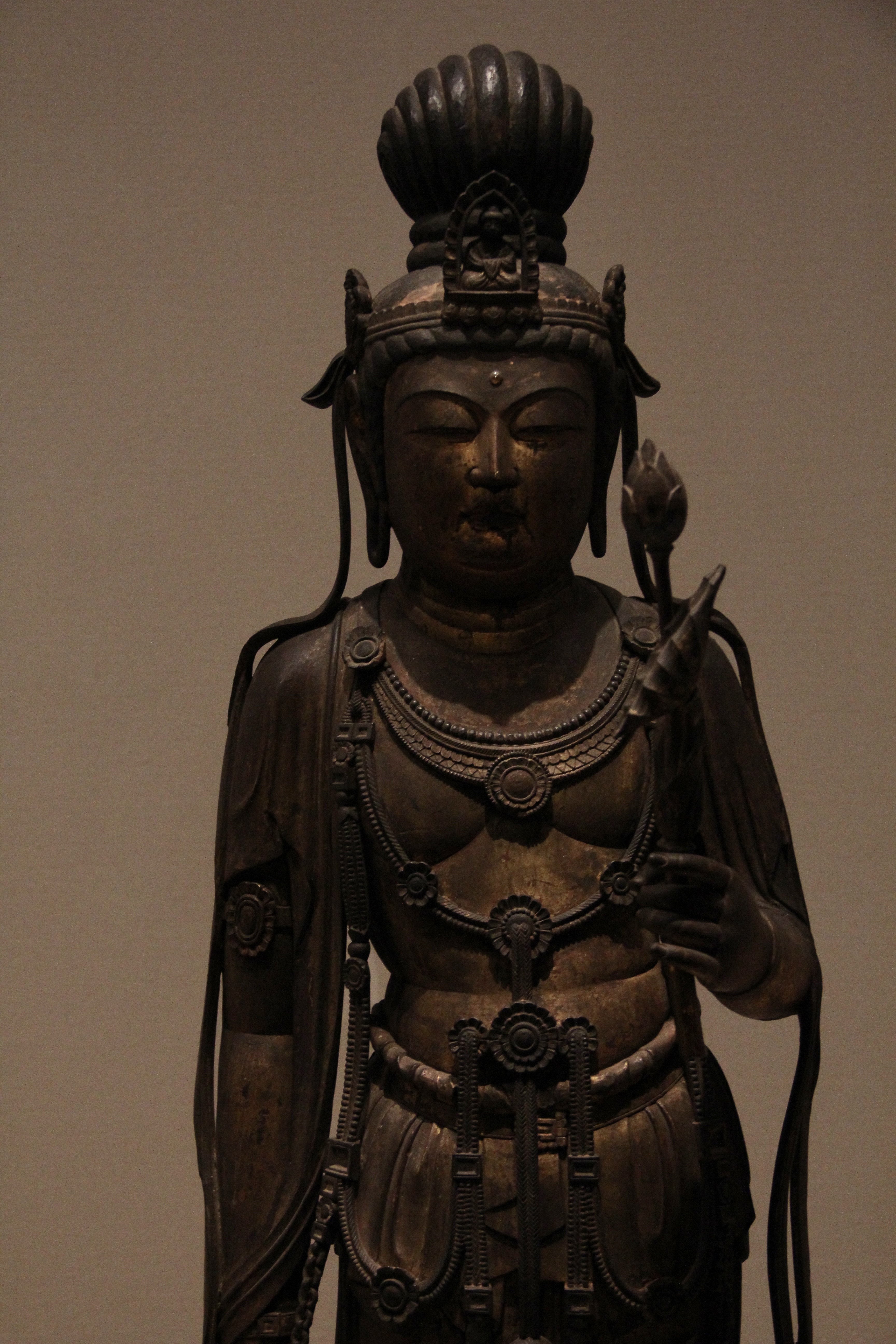 8세기 나라 시대의 聖観音菩薩立像입니다. 성관음, 관음보살, 즉 관세음보살의 모습이 표현되어 있습니다. 양감이 느껴지는 신체의 표현이나 보석 장식 등의 표현은 당나라의 영향이 느껴집니다.