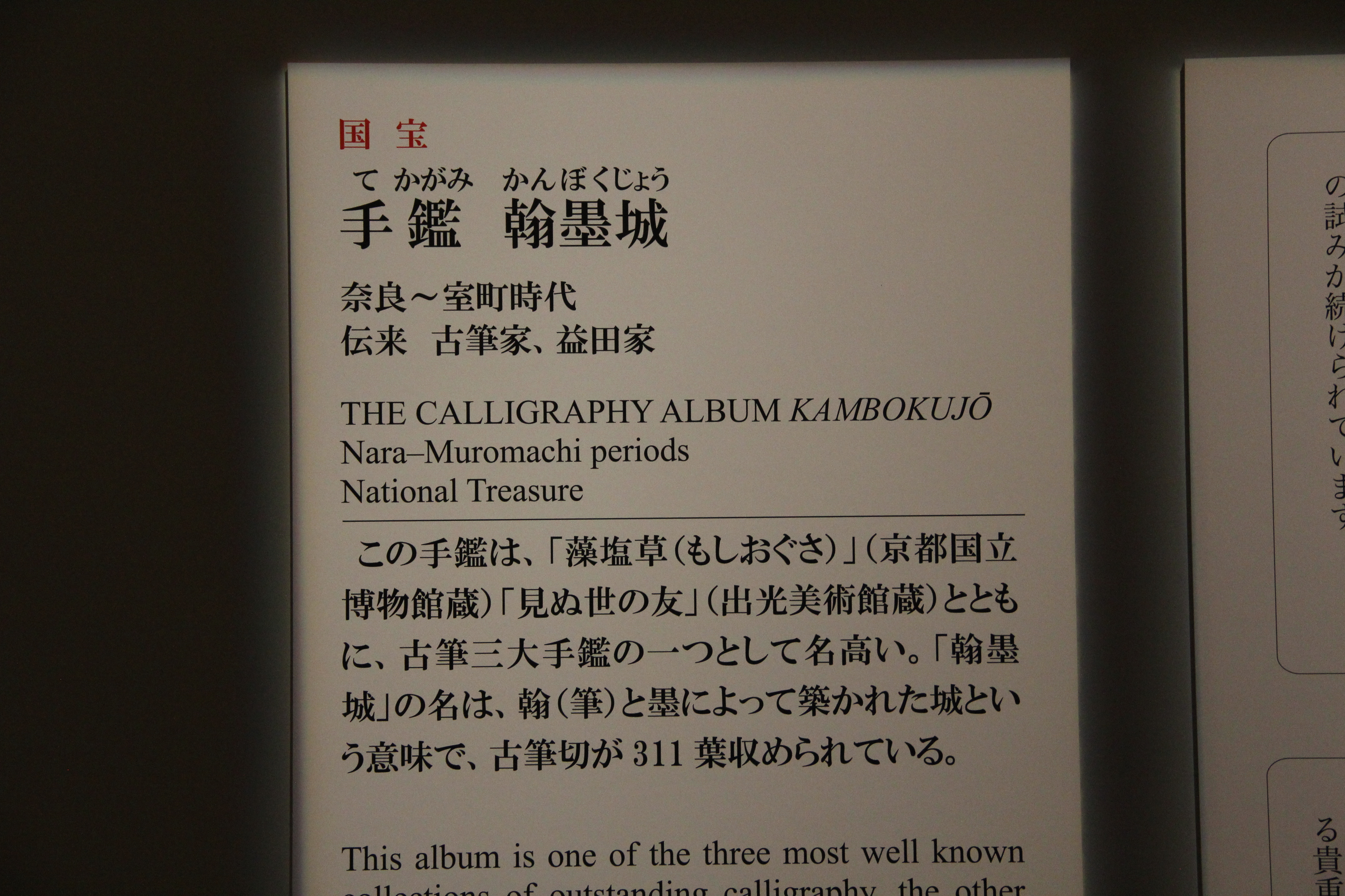그리고 마지막 세번째 국보, 手鑑 翰墨城입니다. 저는 이걸! 보려고! 여길! 왔죠!!! 아마 시기에 따라 다른 페이지를 전시하고 계시지 않았을까.. 같은 아쉬움도 들었지만 뭐 네 어쩔수 없죠ㅠ 흑흑 手鑑는, 고필 작품들을 조각조각 잘라 감상하기 편하도록 앨범처럼 모아놓은 것을 말합니다.