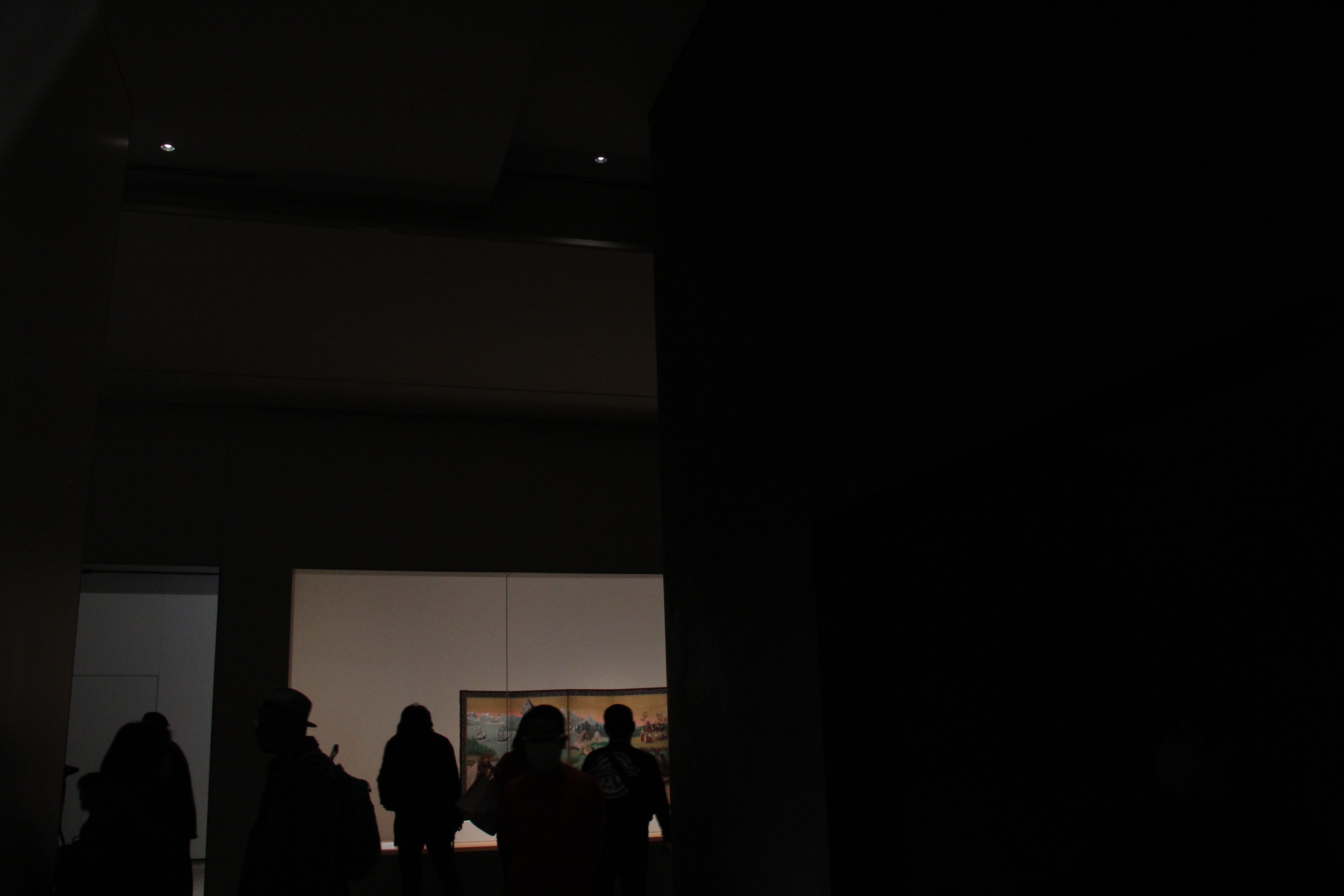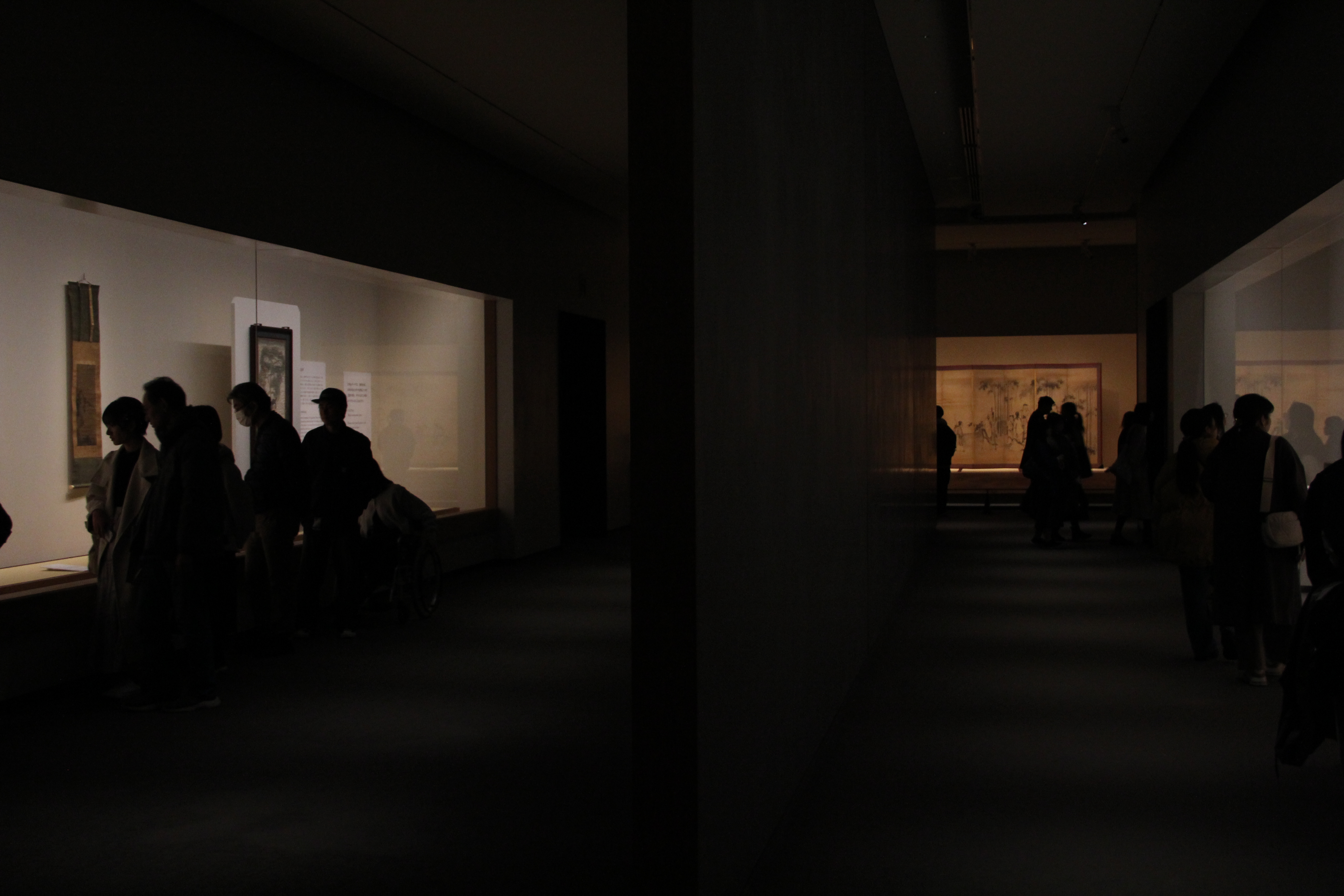 기왕 이야기가 나와서 좀 더 해보자면, 사립 박물관은 원래 그 나름의 개성들이 보이게 마련이지만, 이곳은 도쿄가 아니라는 공간적 이점을 활용하여, 전시 공간 자체를 무척이나 호화롭게 활용하고 있더라고요. 본관 1층과 2층을 활용해 총 6개 전시실이 있는데, 이 공간에서 현재 전시하고 있는 작품은 불과 72점입니다. 제가 다녀 온 것 중에서는 야마토에 전시회나 서도 미술관 전시회가 훨씬 좁은 공간에 거의 200점에 달하는 작품을 전시하고 있었던 것을 생각하면 무척이나 대조적입니다. 그래서 정말로 전시품은 벽면을 둘러 전시되어 있고, 중앙에는 가벽 같은 것이 세워져, 관람 구역은 거의 통로 같은 구조로 되어 있고, 이렇게 관람객들이 있는 통로 공간은 거의 조명이 없어 어둡습니다. 앞에서 미술관 측이 설명한 '반사율을 줄이기 위한 노력'의 형태겠죠. 그래서 정말로 관람 조건은 무척이나 훌륭했고, 전시 작품에 더욱 깊이 집중할 수 있었습니다.