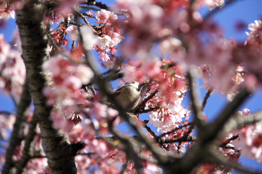 이건, 熱海桜 아타미 사쿠라라는 품종이라고 하네요. 그러고보니, 제가 좋아하는 河津桜 카와즈 사쿠라와는 꽃술 부분이 약간 다르게 생긴 것 같기도 합니다. 꽃 사이사이에 동박새와 참새들이 아주 봄날 햇살을 만끽하고 있더라고요. 그래서 저도 열심히 사진을 찍었답니다ㅎㅎ 그리고 저의 카메라는 이 사진을 끝으로... 배터리가 바닥 나 오늘의 역할을 마무리하게 됩니다; 그래도 귀여운 참새 궁둥이 사진을 얻었으니 저는 만족해요. 헤헤.