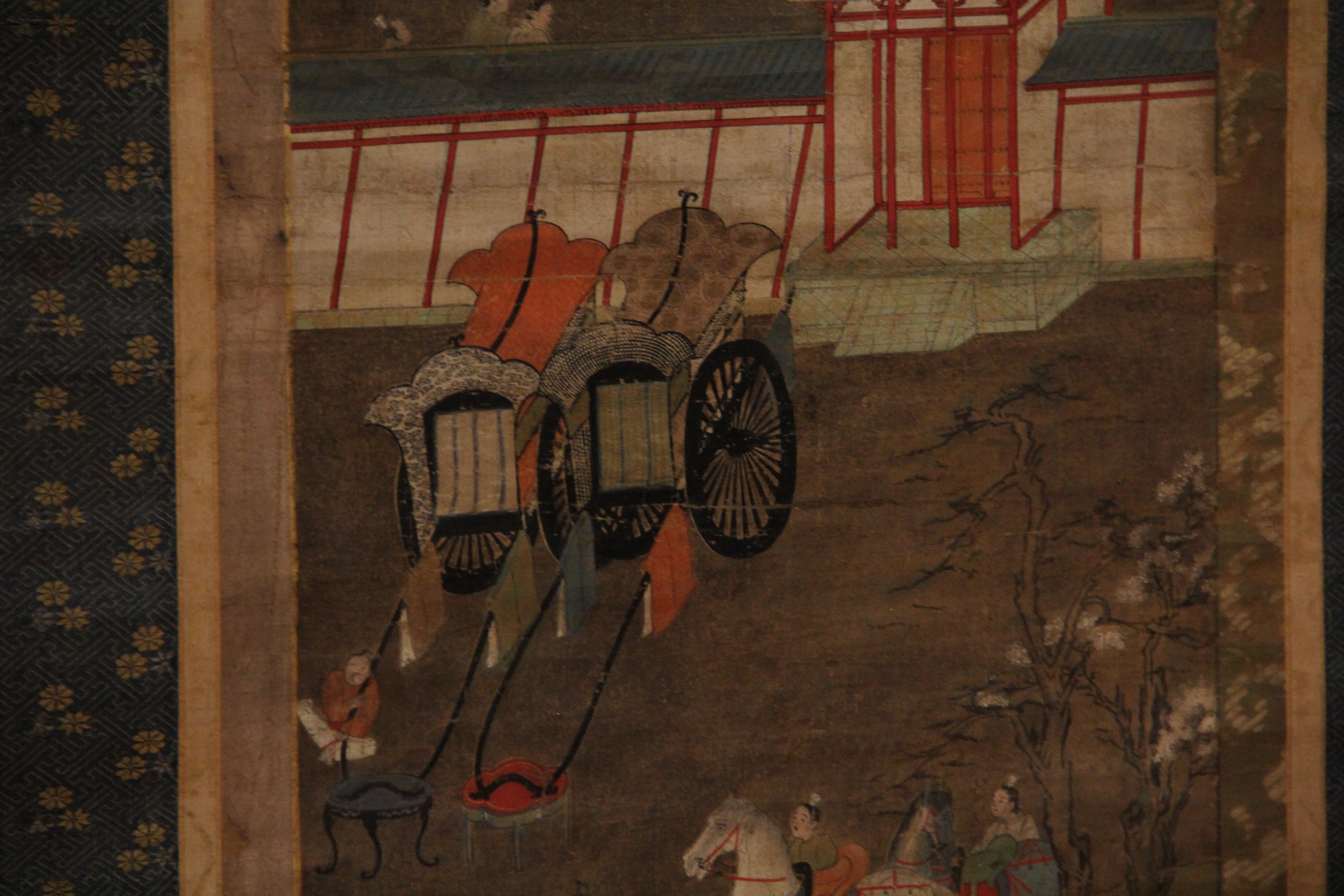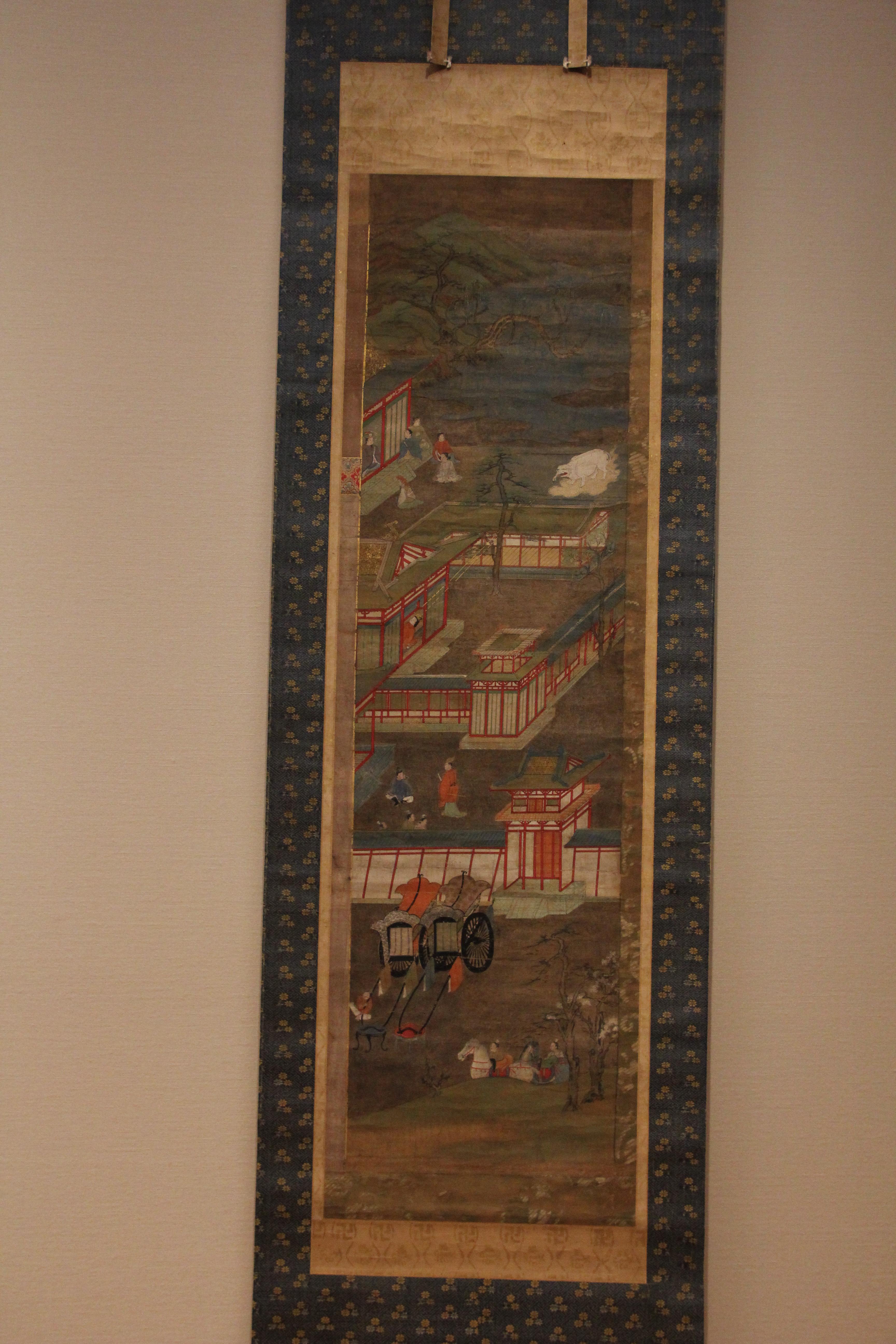 석가팔상도, 혹은 불전도로 불리는 형식입니다. 오늘 본 회화 작품은, 주인공을 '석가'로 표현하고 있기는 하지만 건축양식이나 사람들의 행동이나 우차 등의 요소를 보면 너무 일본의 모습으로 그려져있어서 재미있더라고요.