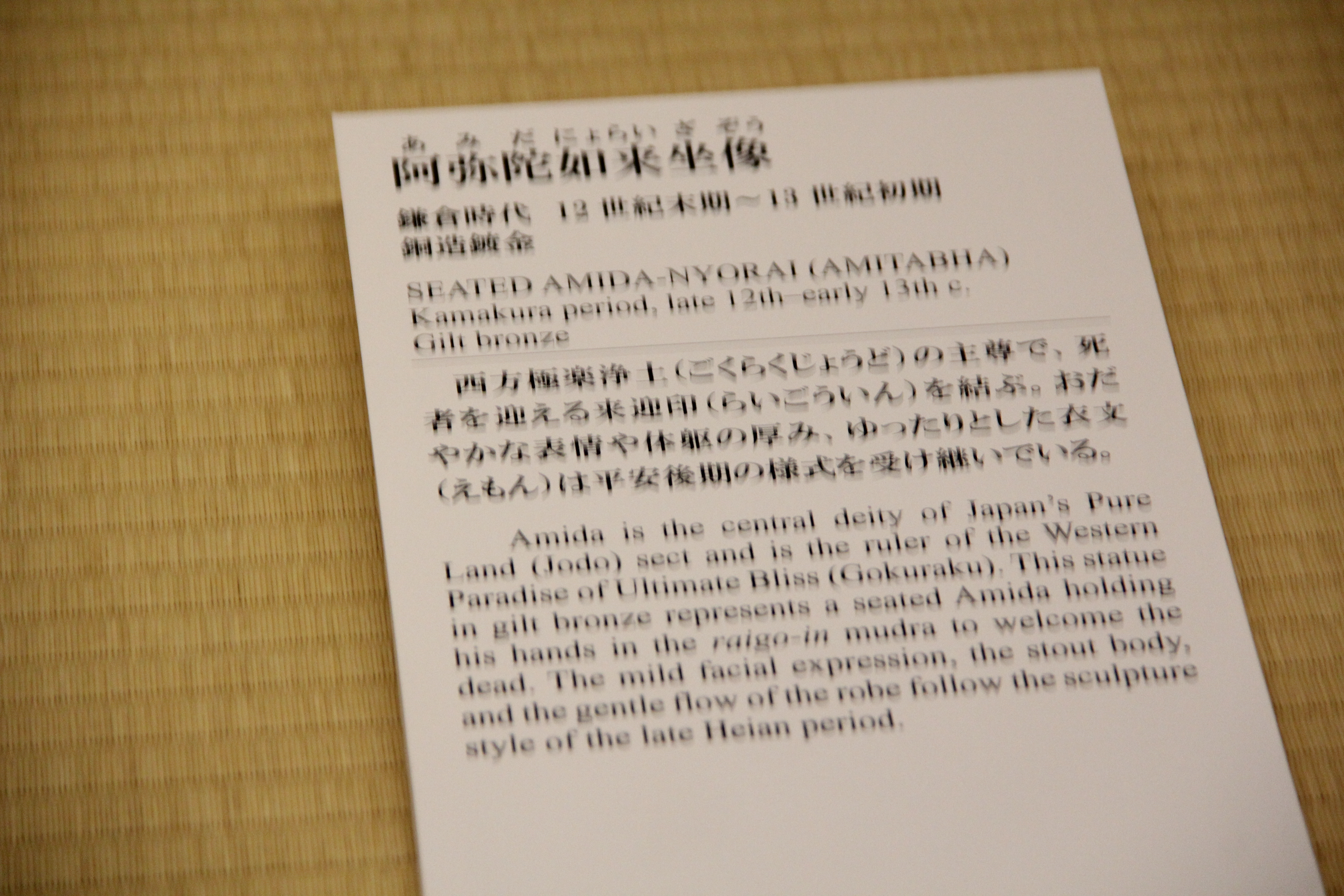 13세기 가마쿠라 시대의 阿弥陀如来立像입니다. 죽은 이의 영혼을 극락왕생의 길로 이끌어주는 부처입니다.