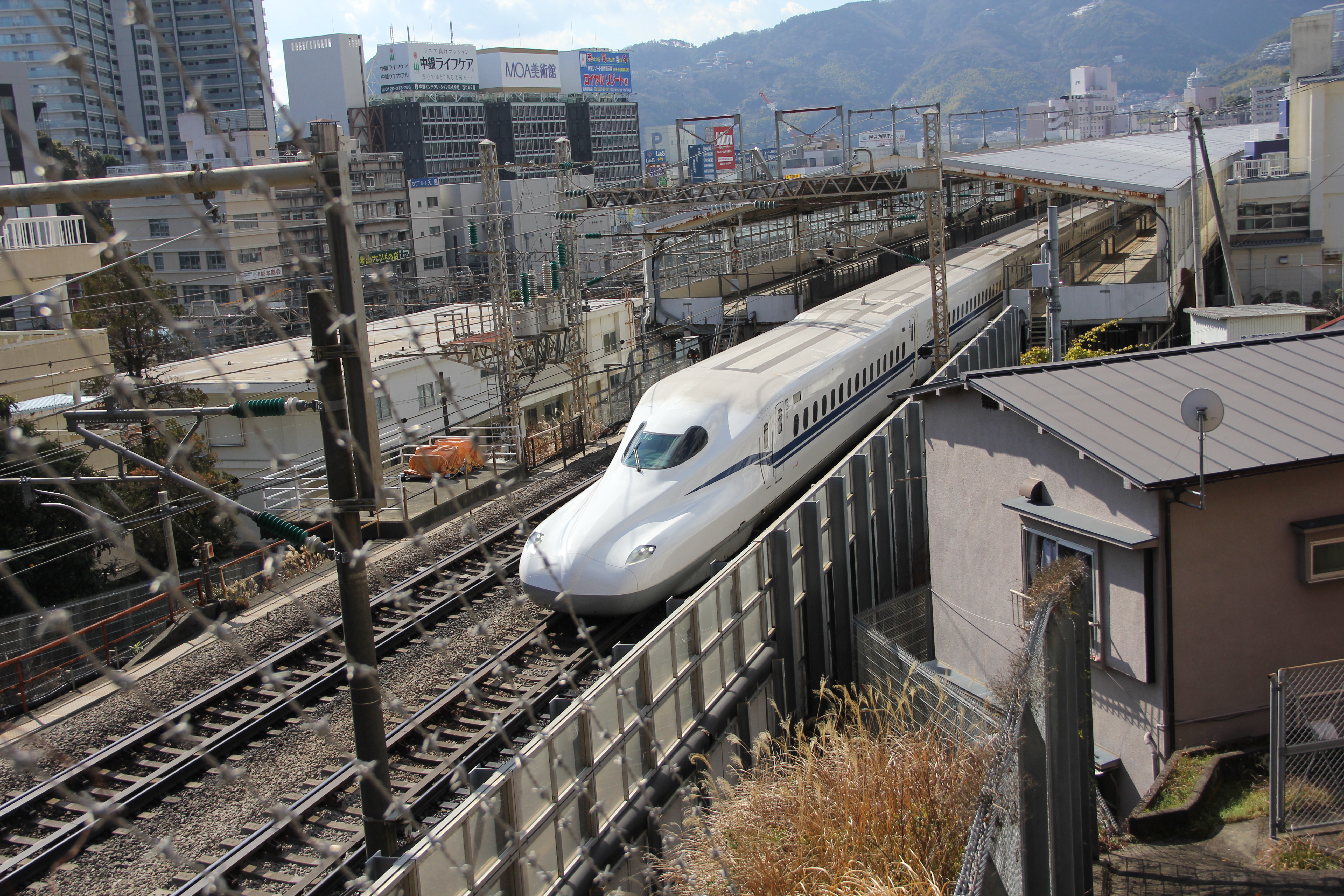 미술관을 향해 걸어 올라가다보면, 신칸센이 지나가는 것도 구경할수 있답니다(?) 기왕이면, 싶어 열차가 들어오고 출발하길 기다려 사진도 찍었습니다. 매끈하고 새하얀 모양새가 제법 귀여웠어요.